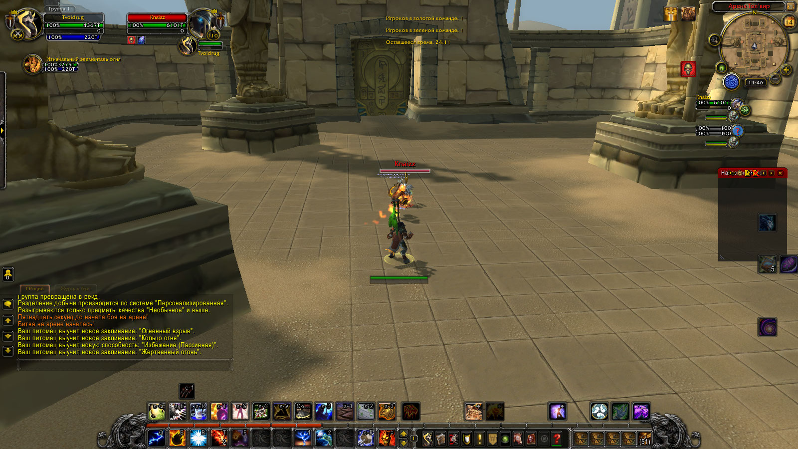 Добавлю, что элементаля и отозвать не получается, т.е если призвал, то находишься в бою до момента, пока элем не пропадет, т.к и отозвать от цели не получится без рабочей панели питомца. |