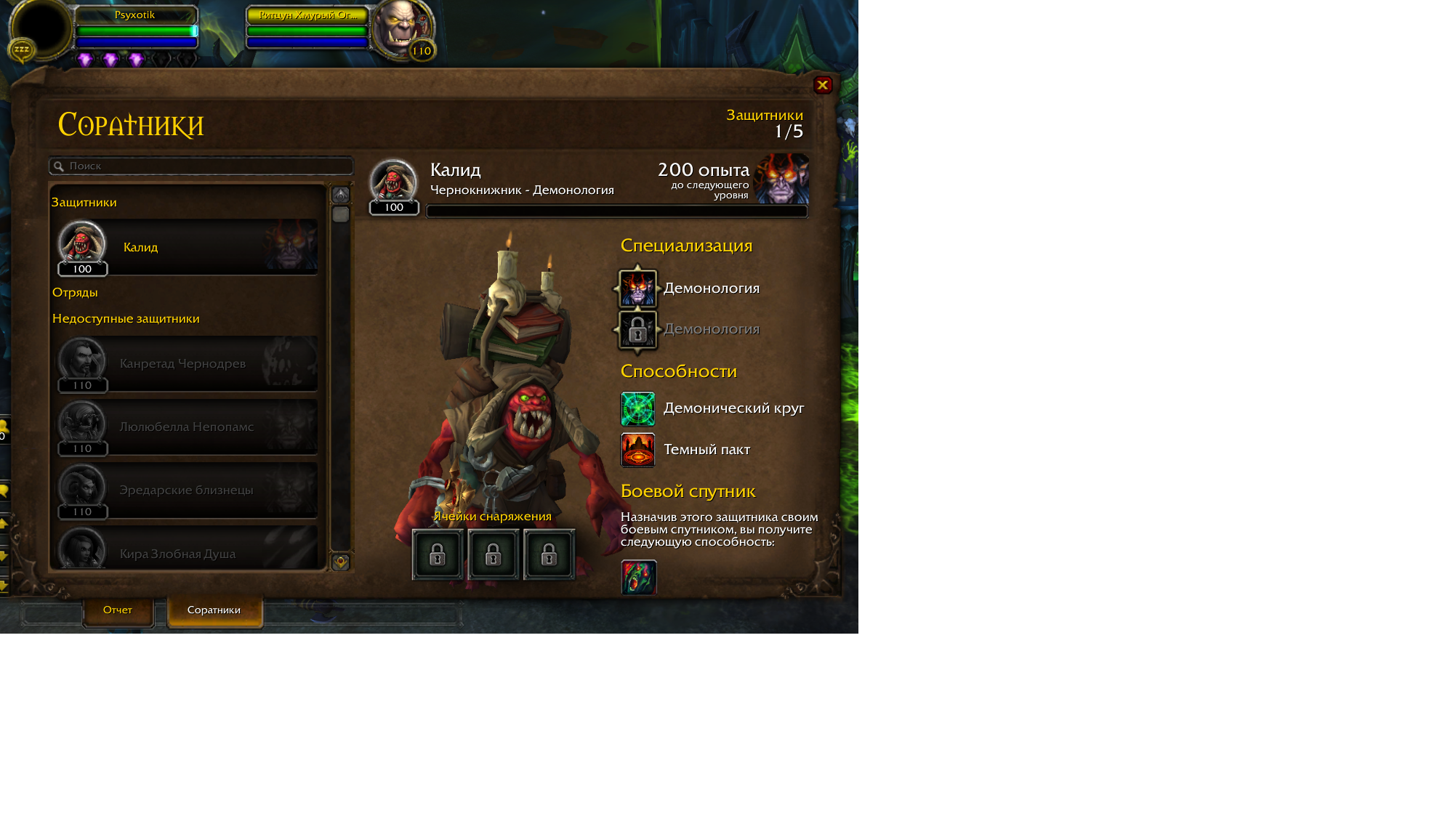Summary0004748: Чернокнижник-оплот. Нельзя завербовать последнего нпс