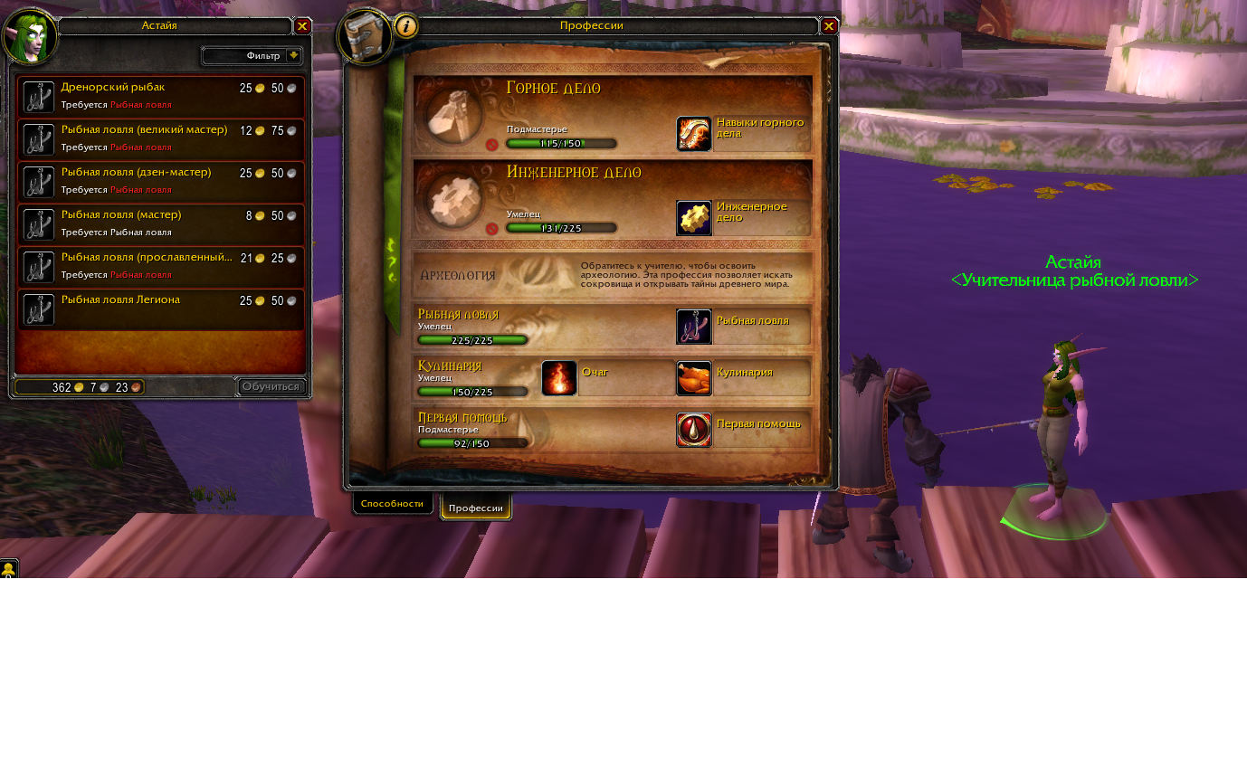 | Description | https://ru.wowhead.com/fishing профа уперлась 225/225 и дальше не проучивается. Учителя не дают улучшить навык. , пробовала у разных учителей. | ||||