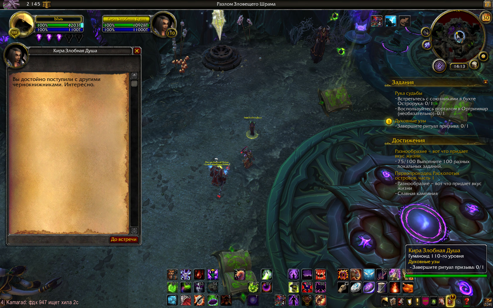 | Steps To Reproduce | Задания оплота класса. 28 квест оплота. вовхэд: https://ru.wowhead.com/quest=41768/%D0%B4%D1%83%D1%85%D0%BE%D0%B2%D0%BD%D1%8B%D0%B5-%D1%83%D0%B7%D1%8B#english-comments | ||||