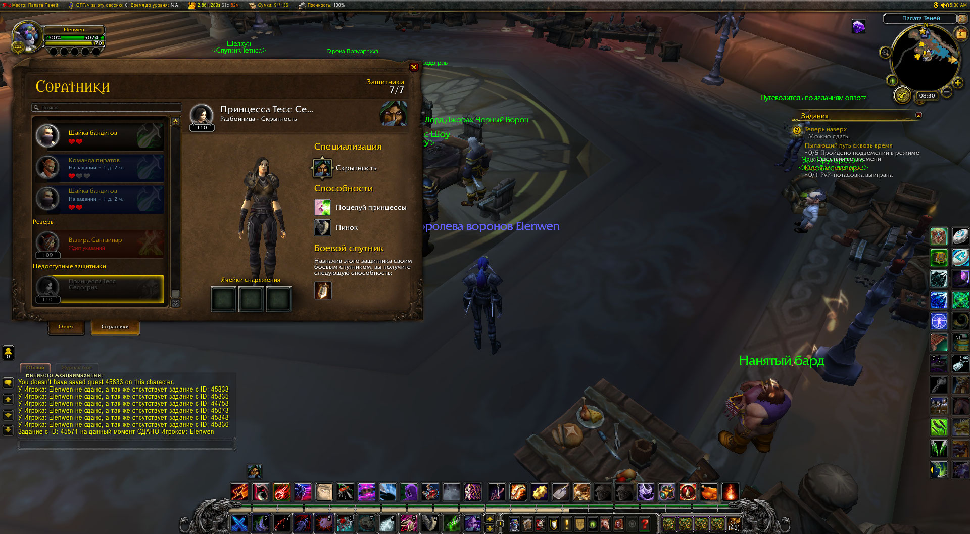 Additional InformationНа скриншоте изображено отсутствие защитника оплота, отсутствие задания как у https://ru.wowhead.com/npc=101513/lord-jorach-ravenholdt так и в путеводителе по заданиям оплота, отсутствие выполненных заданий цепочки, завершённый квест https://ru.wowhead.com/quest=45571/a-bit-of-espionage и выполненное, но не завершённое задание https://ru.wowhead.com/quest=45573/rise-up