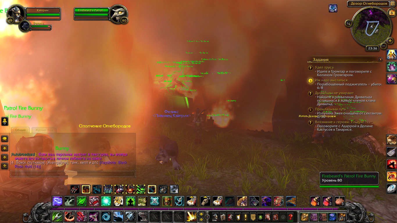 | Description | В Дозоре Огнебородов(Сумеречное Нагорье) какой-то хаос творится,мало того что всюду пожар так ещё и засилие демонов по всюду которые как понимаю не должны быть видимыми.Всё видно на скриншоте который прилагается. | ||||