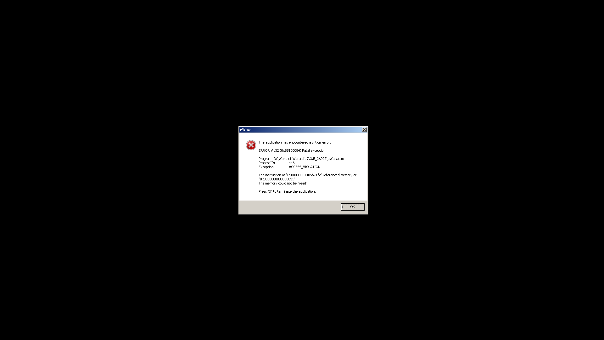 Program: D:\World of Warcraft 7.3.5_26972\eWow.exe