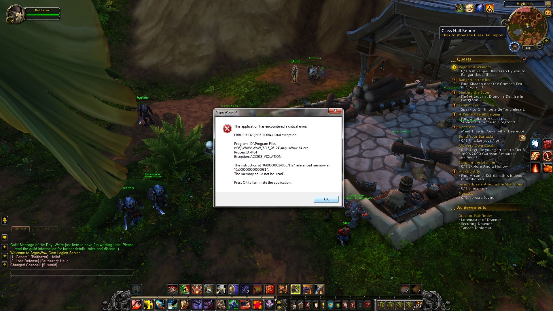 | Description | So basically every time I click on my followers button at the moment next to the mini map, I get a fatal crash error. Unsure why, but I got bugged with my Draenor Garrison recently, so used website to fix it by being teleported to GY. Ever since then it's been doing it... | ||||