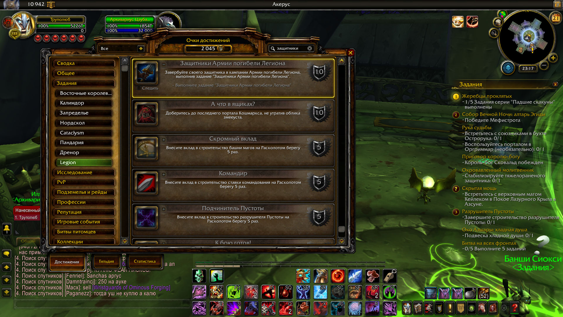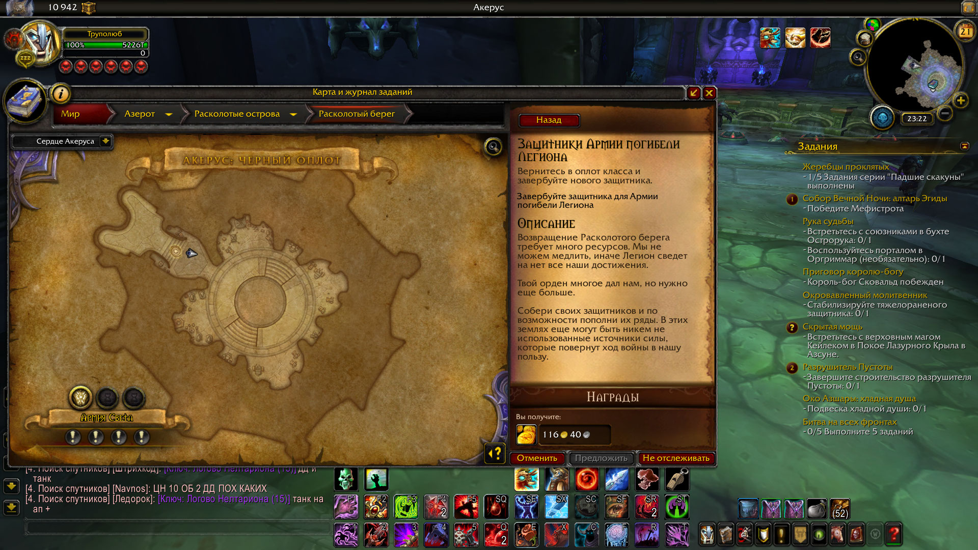 Не могу улучшить оплот что бы было 6 защитников,так как требуется достижение "Защитники Армии погибели Легиона" https://ru.wowhead.com/achievement=11846 ,которое даётся за квест с таким же названием https://ru.wowhead.com/quest=47137 .Квест завершить не могу так как нет возможности завербовать защитников,вследствие чего,нет возможности проверить то что вы посоветовали. WoWScrnShot_092119_231727.jpg (529,786 bytes) WoWScrnShot_092119_231753.jpg (618,156 bytes) WoWScrnShot_092119_232214.jpg (564,495 bytes) |