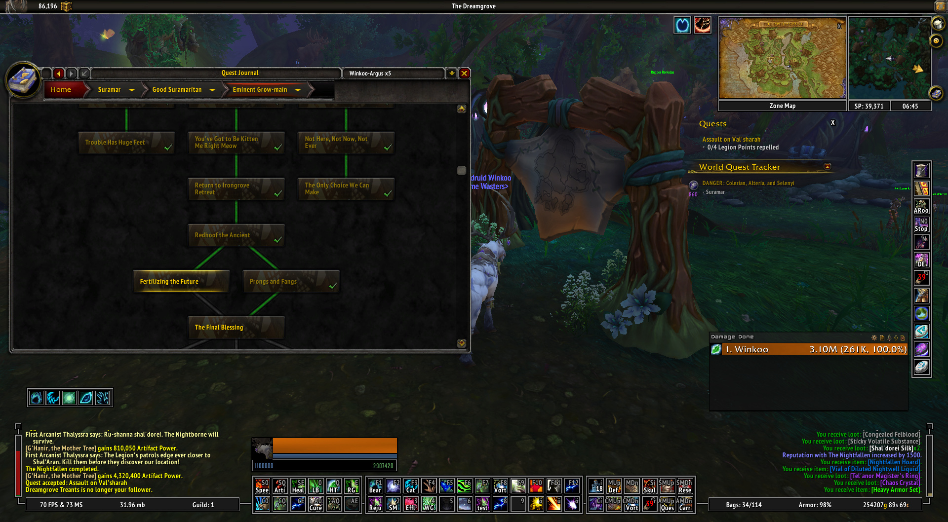 | Description | He is only offered me one quest, but he need to give us 2 quest in the Suramar storyline, before his 3rd quest. Once i completed his quest, which has higher questid like the missing one, he is disappeared, and i can't pick up the lower questid quest anymore, for the storyline. As you can see on the screenshot, i have completed the 41475 quest, but 41474 is uncompleted, and he never offered me to pick up that quest. Somebody please remove the completed status from my 41475 quest, and i hope he will come back and offering both quest.. But he suppose to be there and offer us the lower id quest too.. since the 2 quest on the same level, not consecutive for each other. So why he disapearing after the higher questid quest completed? There is no direct order to complete in 2 same level quest. I only miss this for flying in legion, so i really upset about this. https://www.wowhead.com/npc=103569/mythandros-irongrove https://www.wowhead.com/quest=41474/fertilizing-the-future https://www.wowhead.com/quest=41475/prongs-and-fangs | ||||