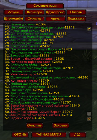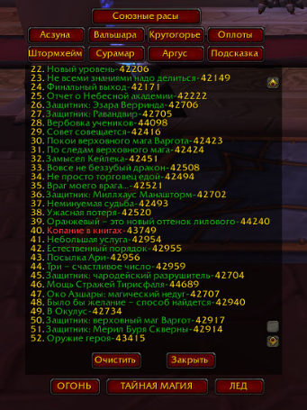 DescriptionДобрый день. Суть проблемы заключается в следующем: у меня уже сил нет искать как мне начинать кв которые не выполнены (см. скриншот, по аддону который нашел на сайте - красные это те которые не сделаны) я делал кв как вдруг цепочка оборвалась и всё... я летал вручную к этому нпс который должен давать кв, там дракон https://ru.wowhead.com/quest=42508/%D0%B2%D0%BE%D0%B2%D1%81%D0%B5-%D0%BD%D0%B5-%D0%B1%D0%B5%D0%B7%D0%B7%D1%83%D0%B1%D1%8B%D0%B9-%D0%B4%D1%80%D0%B0%D0%BA%D0%BE%D0%BD