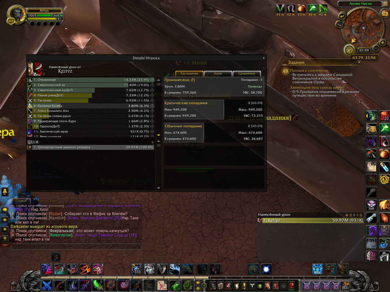 | Description | Ещё с начала 7.3.5 на проекте появился баг, связанный с проком бомбы https://ru.wowhead.com/spell=192657/%D0%BD%D0%B0%D0%B1%D0%BE%D1%80-%D1%85%D0%B8%D1%82%D1%80%D0%BE%D1%81%D1%82%D0%B5%D0%B9#changelog который порядком потрит игру на разбойнике, потому что теряется 1 прок на 1-2 млн http://egammi.net/image/SZth - док-во прока 5 , должно быть 6 | ||||