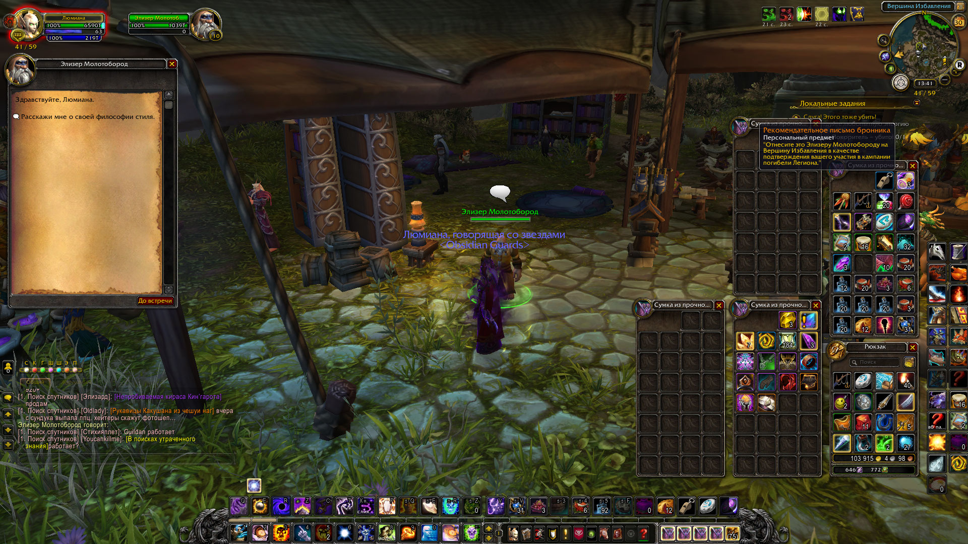 | Description | https://ru.wowhead.com/quest=47012/поддержка-разрушителя-пустоты по завершению даёт https://ru.wowhead.com/item=147451/рекомендательное-письмо-бронника, далее должны появится кв у нпц https://ru.wowhead.com/npc=120221/элизер-молотобород. Своим персонажем уже сшил 5 https://ru.wowhead.com/item=146666/селумбра-дихотомия-ночи и кв перестали появляться. Условия для начала квеста выполнены, в инвентаре имеется уже 3 письма бронника. http://egammi.net/image/SZcU http://egammi.net/image/SZc3 http://egammi.net/image/SZcv http://egammi.net/image/SZcN http://egammi.net/image/SZcP | ||||
