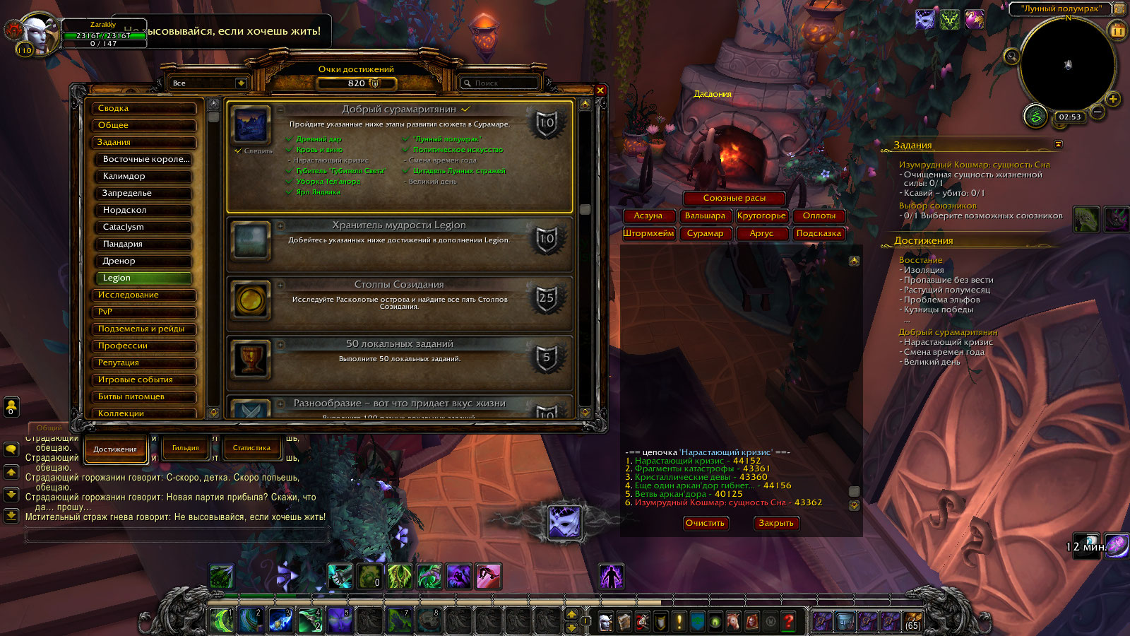 | Description | По заданию (... либо против нас) в игровой зоне Сурамар - задание даёт НПС (Вантир) Я имел неосторожность отменить задание и теперь его негде взять НПС (Вантир) который должен бы стоять в ШалАране у меня его нет или я его не вижу Задание на открытие истории в Сурамаре - без него не как https://ru.wowhead.com/quest=43311/%D0%BB%D0%B8%D0%B1%D0%BE-%D0%BF%D1%80%D0%BE%D1%82%D0%B8%D0%B2-%D0%BD%D0%B0%D1%81 | ||||