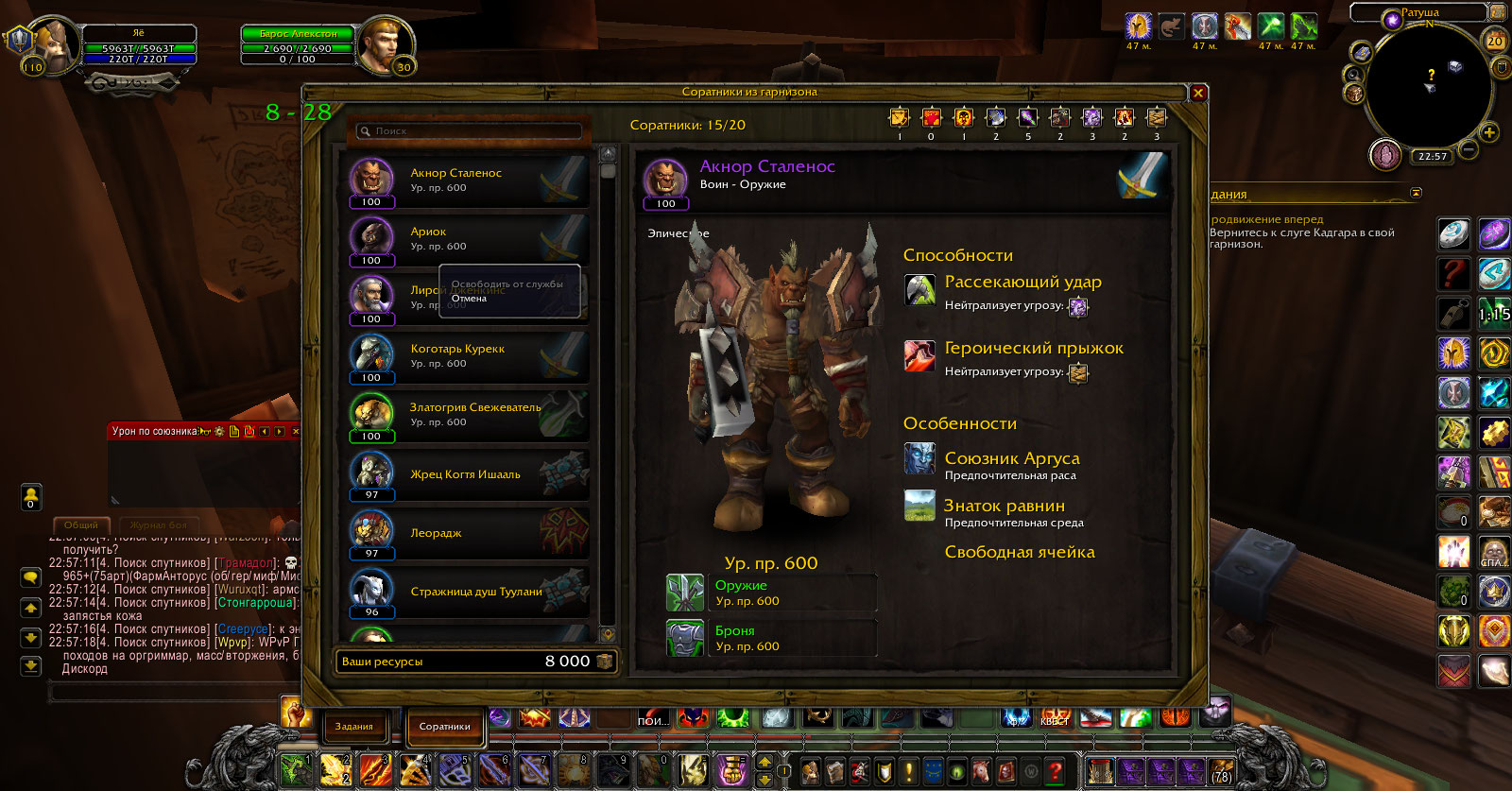 Может это имеет значение, а может и нет, но так же не могу соратников освободить. WoWScrnShot_102019_225718.jpg (363,111 bytes) |