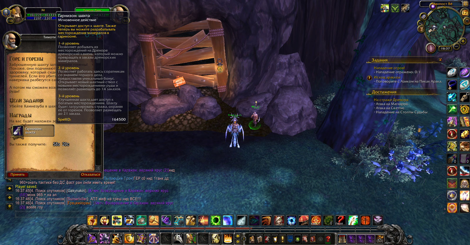 | Description | То ли квест не работает и нельзя шахту открыть, то ли шахта в гарнизоне не работает и нельзя квест сделать. https://ru.wowhead.com/quest=34192/ этот квест открывает доступ к шахте, но шахта закрыта для квеста | ||||