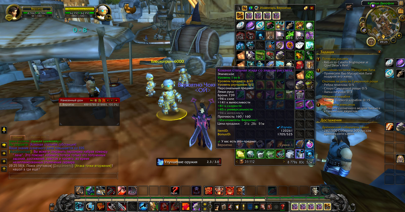 Итем https://ru.wowhead.com/item=128016 не юзается также на итемы: https://ru.wowhead.com/item=116453 https://ru.wowhead.com/item=116454 https://ru.wowhead.com/item=116644 https://ru.wowhead.com/item=116646 https://ru.wowhead.com/item=116647 https://ru.wowhead.com/item=120259 Должен апать их на 15 илвл вплоть до 675 Также, итем https://ru.wowhead.com/item=128016 требует чтобы его таргет был персональным. Не должен |