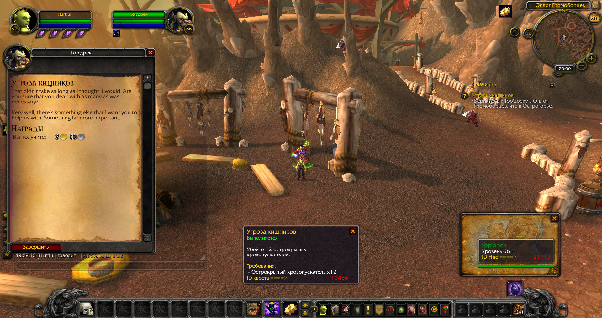 | Description | https://ru.wowhead.com/quest=10486/%D1%83%D0%B3%D1%80%D0%BE%D0%B7%D0%B0-%D1%85%D0%B8%D1%89%D0%BD%D0%B8%D0%BA%D0%BE%D0%B2 При сдаче квеста https://ru.wowhead.com/npc=21117 текст не переведен | ||||