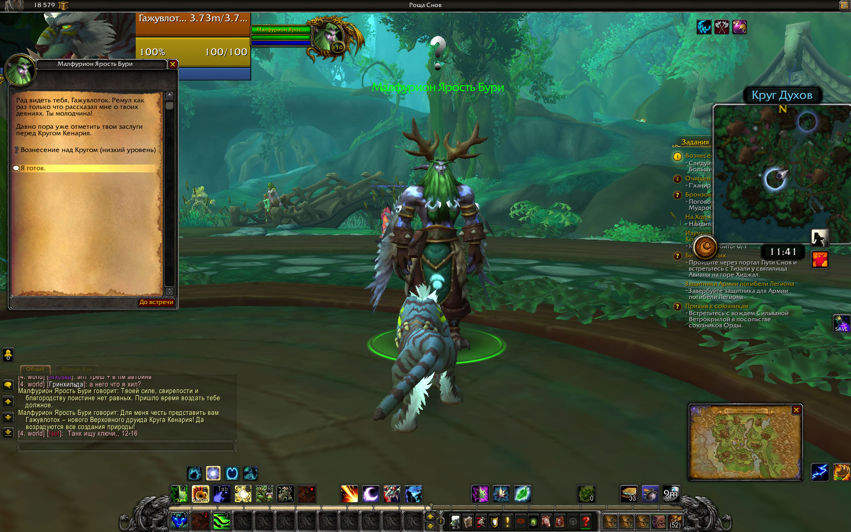 2-следуйте за верховным друидом большим копытом.) выполняется лишь только первая часть кв 1-Поговорите с Мулфарионом. а верховный друид большое копыто, стоит на месте и не куда не идет, пробовал отменять брал снова релогался чистил кэш, исправлял персонажа не чего не помогло. кв нужен для прохождения цепочки на улучшения Оплота друидов. помогите пожалуйста уже прошло более 5 дней все так же не работает, ник в игре Гажувлоток