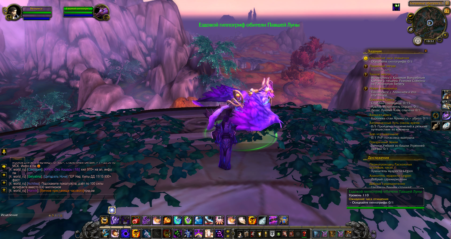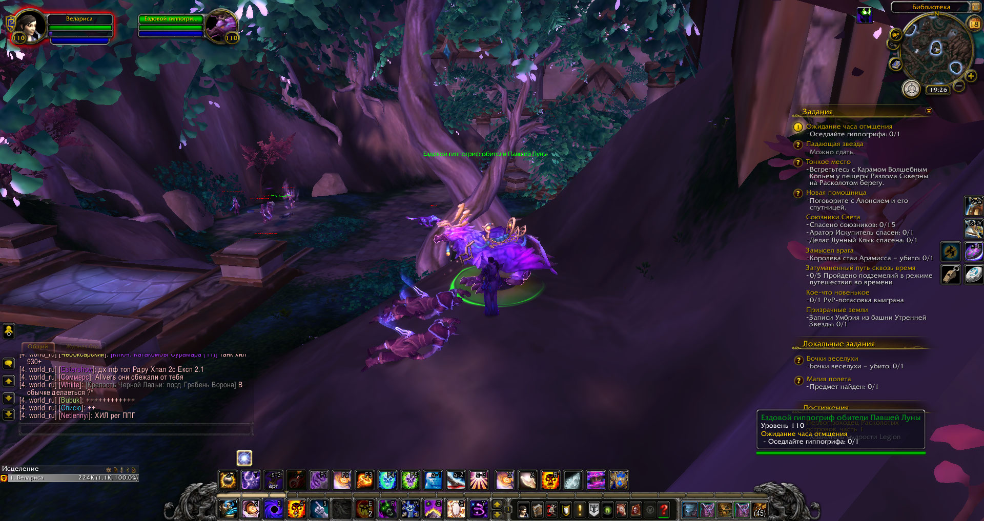 Добрый день! Указанный Вами гиппогриф тоже не работает, оседлать не могу. Дополнительно сообщаю, что опробовал всех доступных гиппогрифов для выполнения задания и они так же не реагируют. WoWScrnShot_111919_215306.jpg (505,694 bytes) |