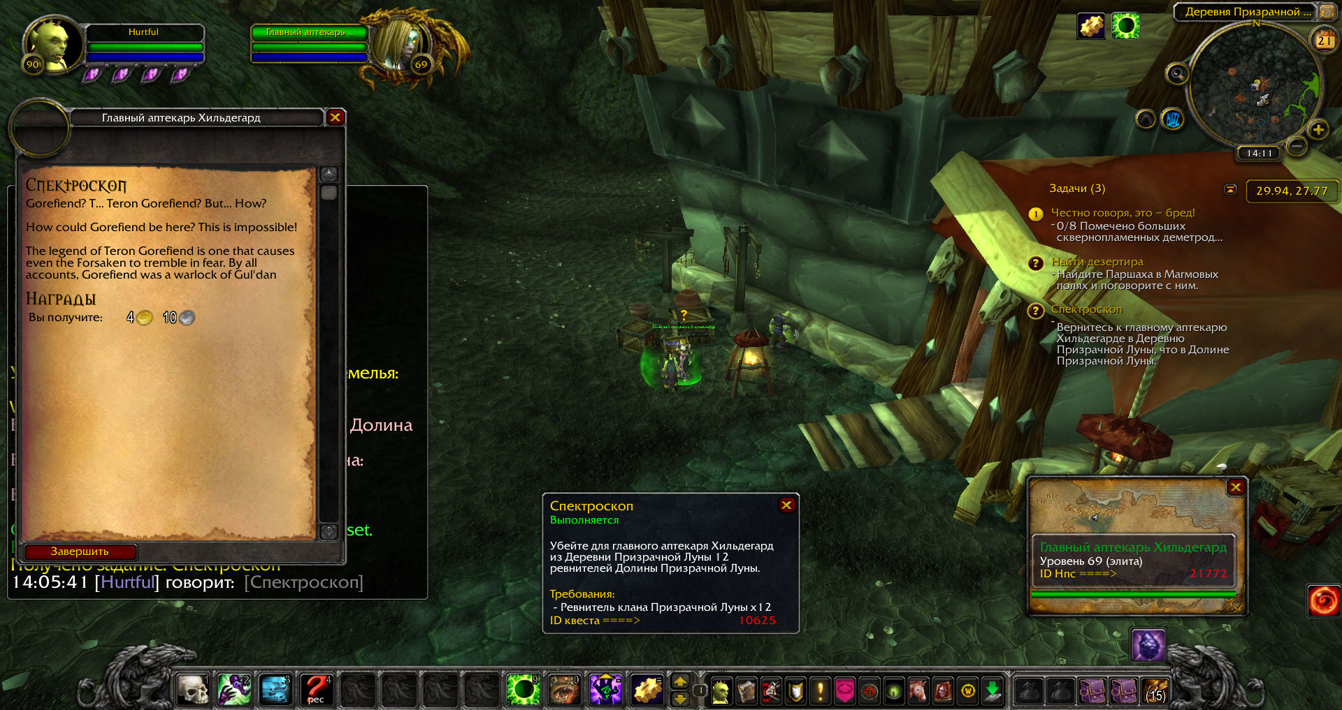 | Description | https://ru.wowhead.com/quest=10625 1) https://ru.wowhead.com/npc=21788 должны быть видны только когда персонаж экипирован https://ru.wowhead.com/item=30719. У нас же они видны постоянно; 2) при сдаче квеста https://ru.wowhead.com/npc=21772 текст не переведен. | ||||