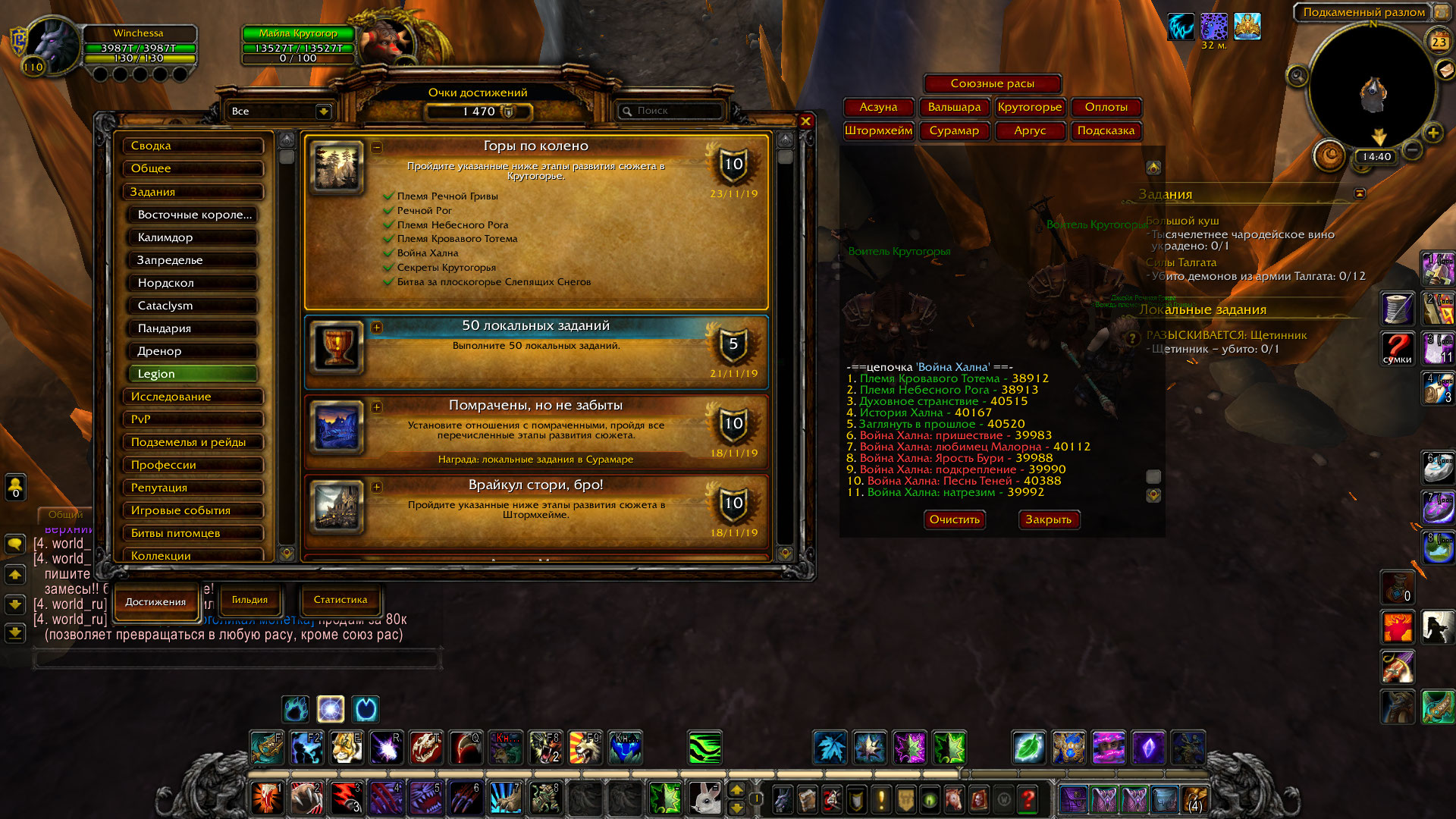 начинала я играть давно. год играла, год отсутствовала, но именно эту цепочку с Халном я начала делать сейчас. так что? вы можете у себя проверить, что это значит? мне можно не делать квесты, отмеченные красным, если у меня есть общее достижение? я пыталась делать другие кв, отмеченные в аддоне красным ("опрыскивание вредителей"), но НПСы ничего не дают. А ВОТ ХАЛН ДАЕТ (точнее, Духостранник Смоляной Рог) |