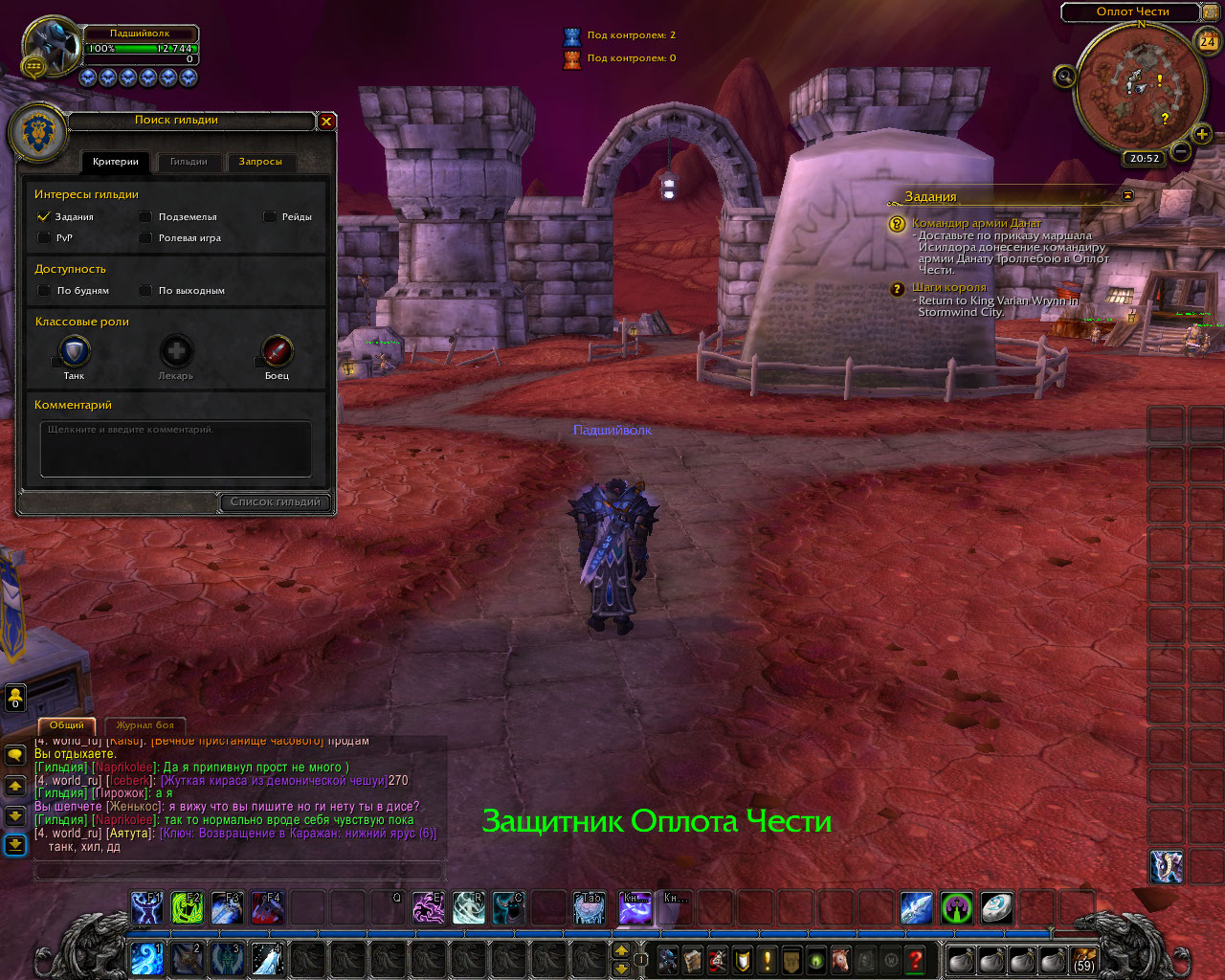 Здравствуйте. Вы на каком сервере играете? Сейчас игроков c uwow x100 кидает на кросс epicwow. Когда вы будете 110 уровнем все вернется в норму. |