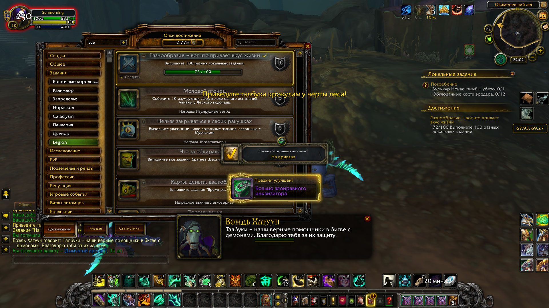 | Description | Не засчитывает локальные задания в https://ru.wowhead.com/achievement=11189/%D1%80%D0%B0%D0%B7%D0%BD%D0%BE%D0%BE%D0%B1%D1%80%D0%B0%D0%B7%D0%B8%D0%B5-%D0%B2%D0%BE%D1%82-%D1%87%D1%82%D0%BE-%D0%BF%D1%80%D0%B8%D0%B4%D0%B0%D0%B5%D1%82-%D0%B2%D0%BA%D1%83%D1%81-%D0%B6%D0%B8%D0%B7%D0%BD%D0%B8. Невозможно получить достижение и выполнить основное достижение https://ru.wowhead.com/achievement=11190/%D0%BF%D0%B5%D1%80%D0%B2%D0%BE%D0%BF%D1%80%D0%BE%D1%85%D0%BE%D0%B4%D0%B5%D1%86-%D1%80%D0%B0%D1%81%D0%BA%D0%BE%D0%BB%D0%BE%D1%82%D1%8B%D1%85-%D0%BE%D1%81%D1%82%D1%80%D0%BE%D0%B2%D0%BE%D0%B2-%D1%87%D0%B0%D1%81%D1%82%D1%8C-1. Без этих достижений невозможно летать в легионе. | ||||