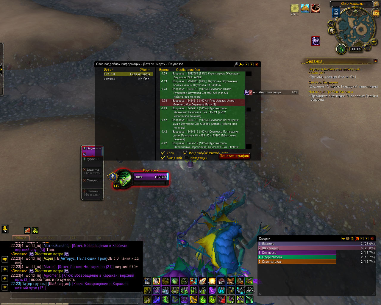 | Description | В подземелье Око Азшары последний босс Гнев Азшары каким то рандомным методом сносит 1 тычкой все хп на скриншоте в 15 ключе, я только прыгнул в него и сразу смерть, даже пассивная способность Охотника на демонов предотвращающую смерть не сработала, так было 2 раза второй раз я был в Метомарфозе 20 миллионов ХП все равно 1 тычка и смерть, подчеркну что такое не всегда бывало проносил без проблем а бывало и такое | ||||
