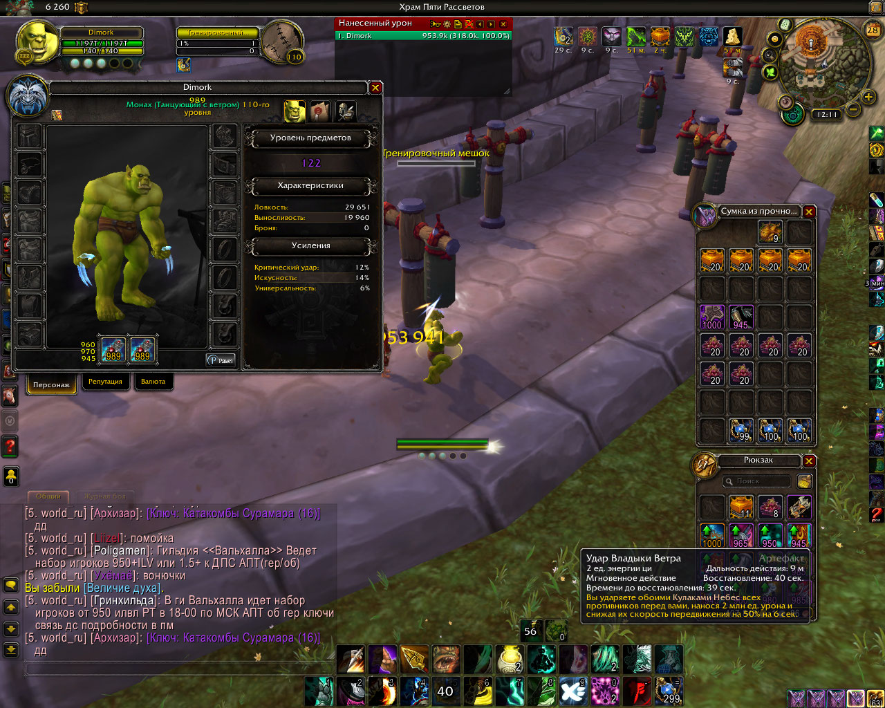 Скиньте статы своего персонажа без вещей, с артефактом. И прожмите без вещей(с артефактом) удар владыки ветра в манекен. |