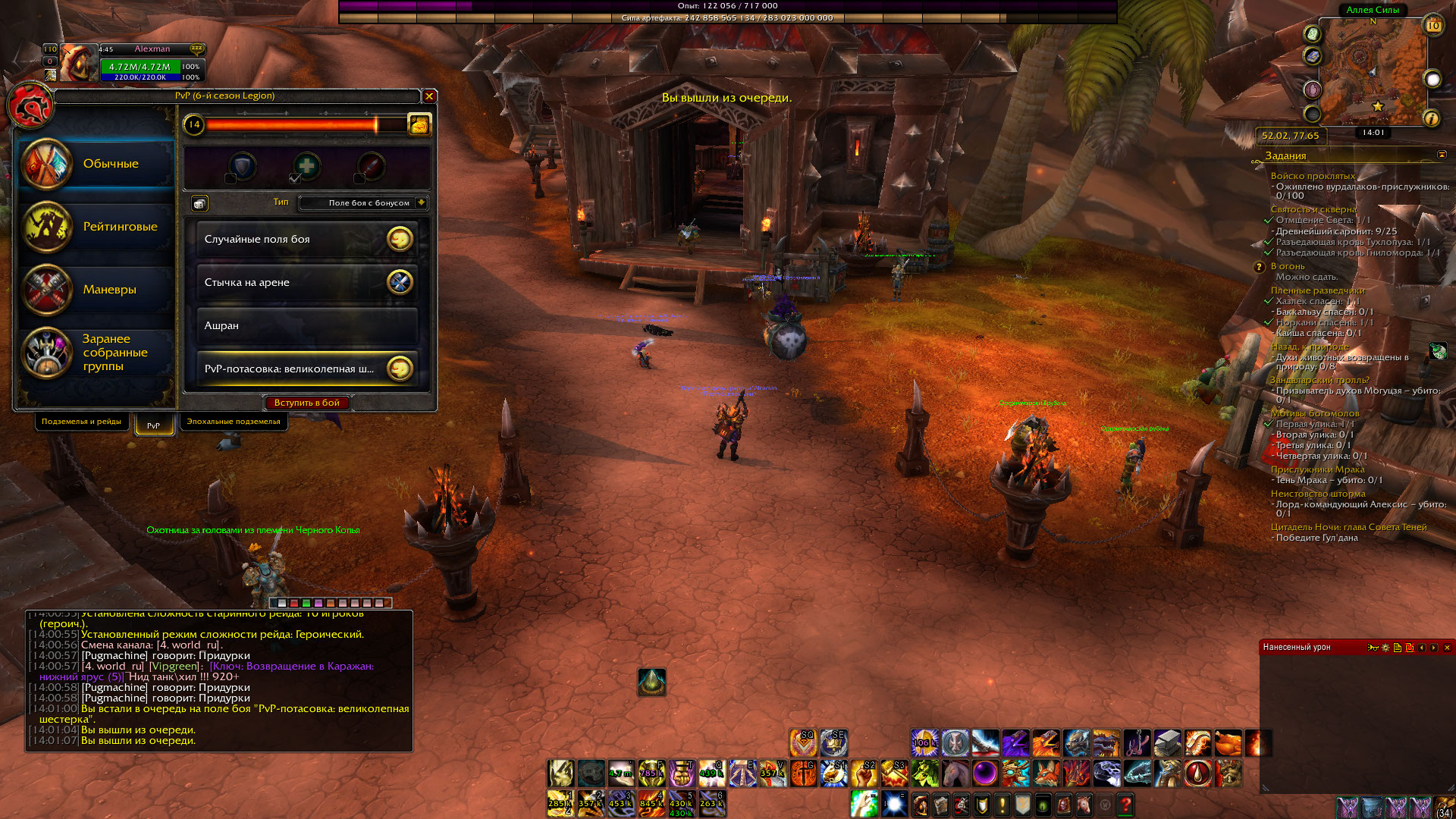 | Description | Невозможно выйти из очереди на Потасовку. Пишет, что мы вышли из очереди, но глаз не пропадает и БГ, например, регнуть одновременно нельзя. Только релог снимает регу. | ||||