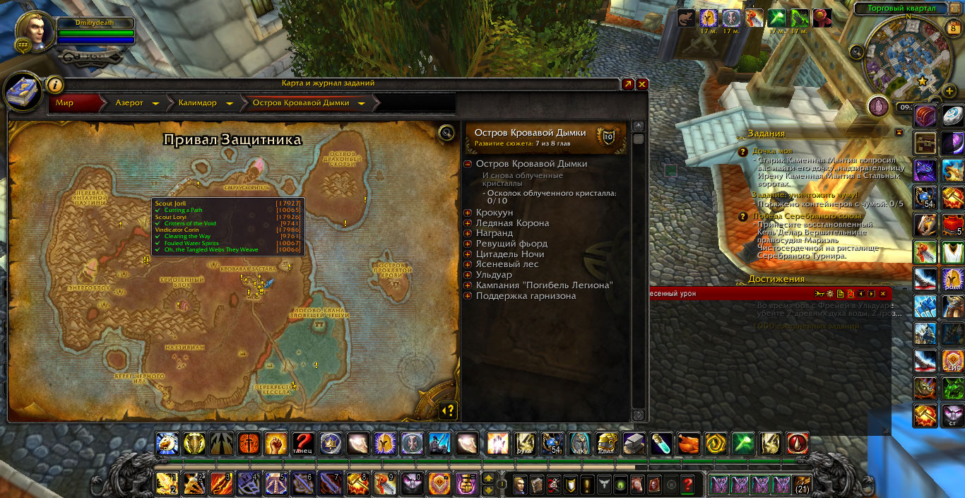 Вот сейчас я отключил задания для других рас и на карте у меня показывает что все возможные квесты сделанные в этой и соседней локации - выполнены. WoWScrnShot_120819_142609.jpg (371,589 bytes) |