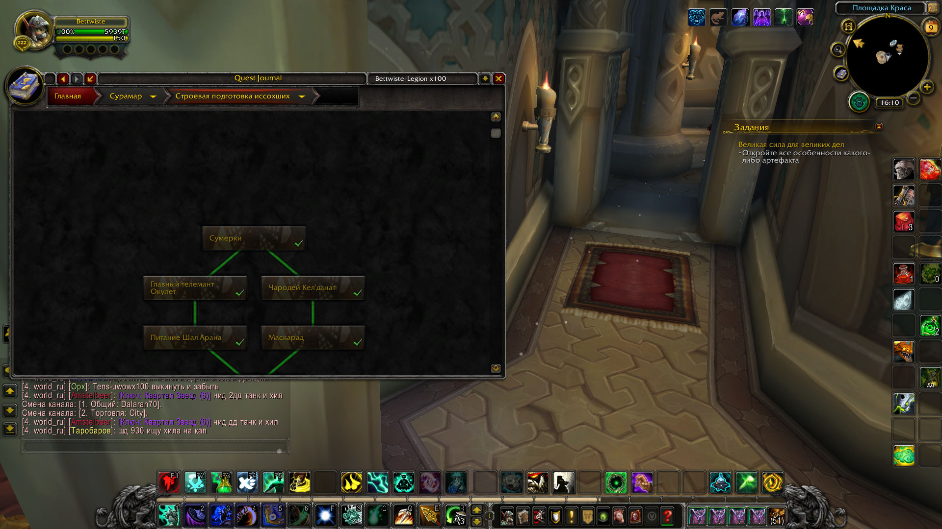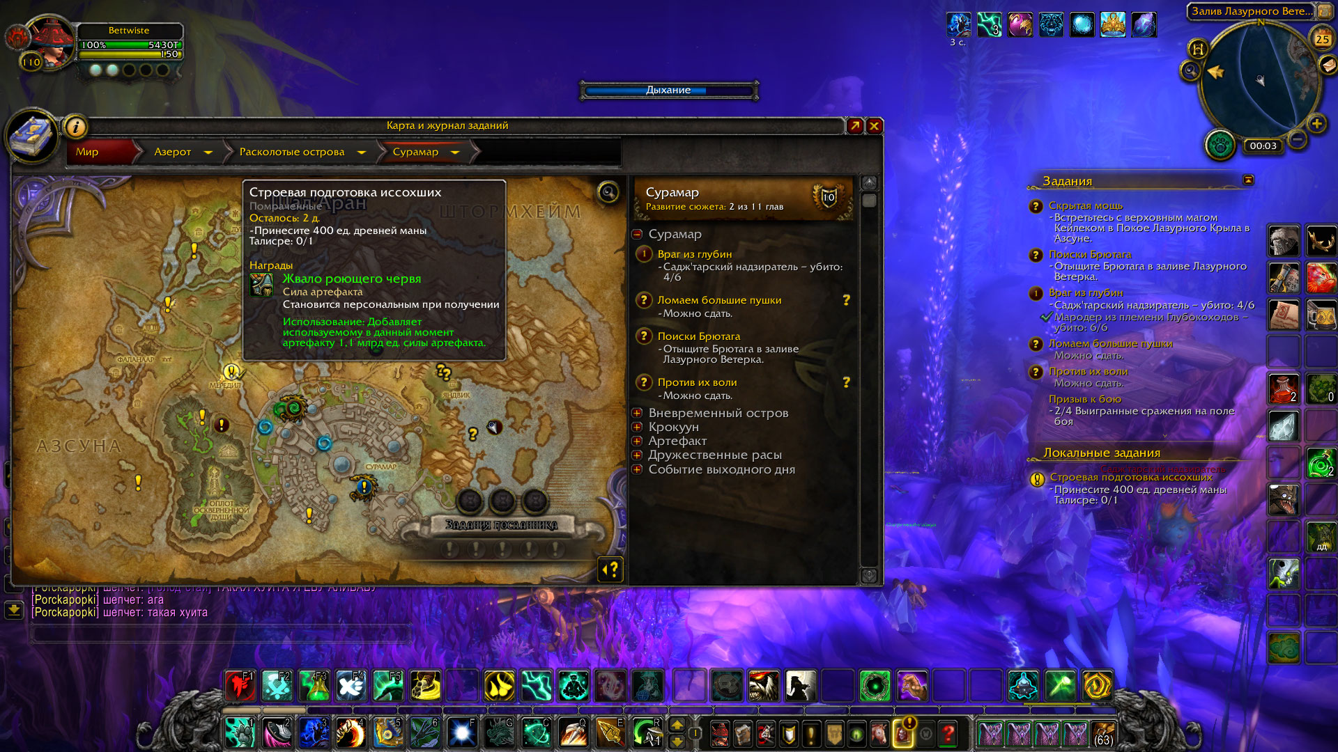 > каким образом сюжетная линия всего Сурамара, влияет на появление локалки этой? После прохождения квеста https://ru.wowhead.com/quest=44636 начинает появляться это локальное задание А башня магов и Сурамар - это разные вещи |