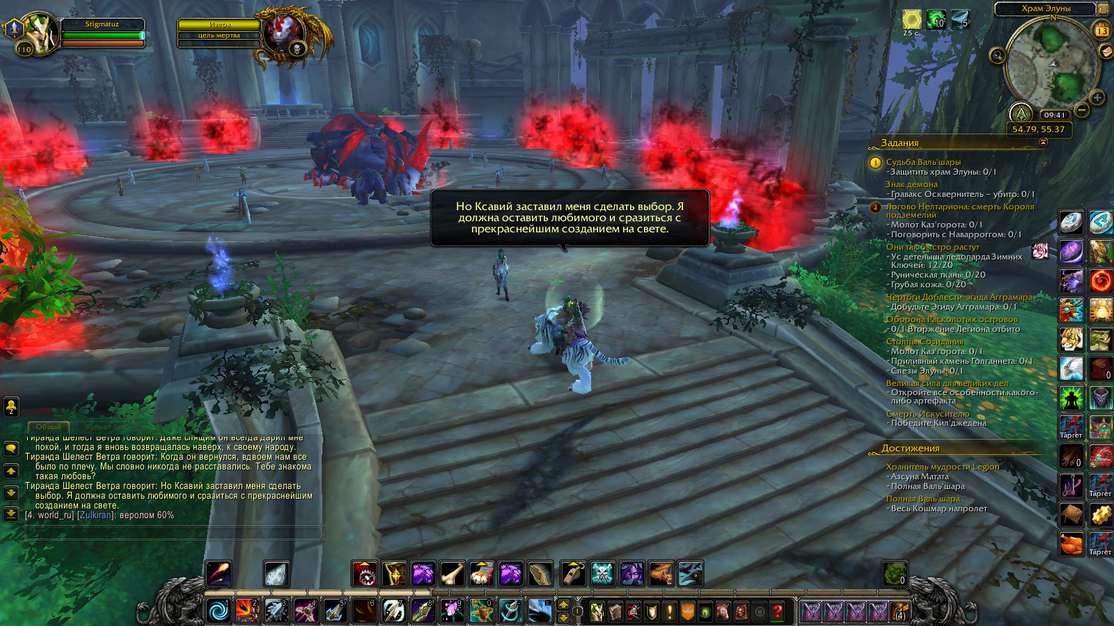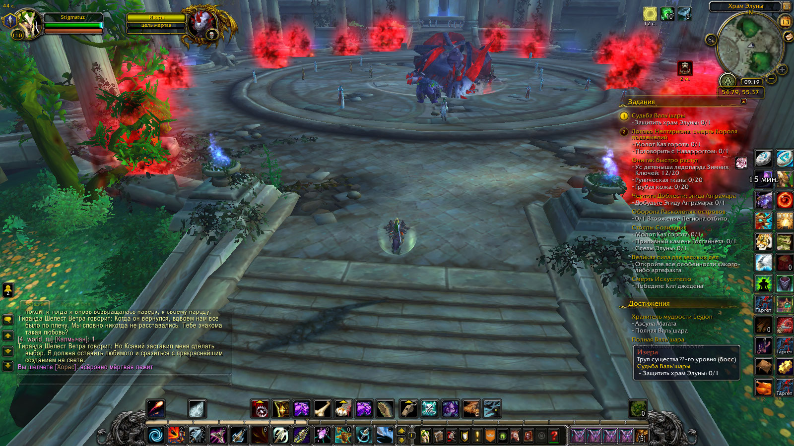 | Description | Беру квесть Судьба вальшары у тиранды, говорю с ней, сажусь с ней на маунта и еду в Храм Элуны, чтобы убить Изеру,но по приезду туда Изера уже мертва, соответственно Храм защитить я уже немогу, так как убить её нет возможности. | ||||