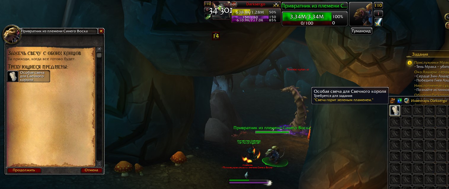 | Description | Квест "Зажечь свечу с обеих сторон" не получается сдать, из-за чего не получается открыть проход для убийства моба Тень Мрака, необходимого для дальнейшего продвижения по цепочке квестов. | ||||