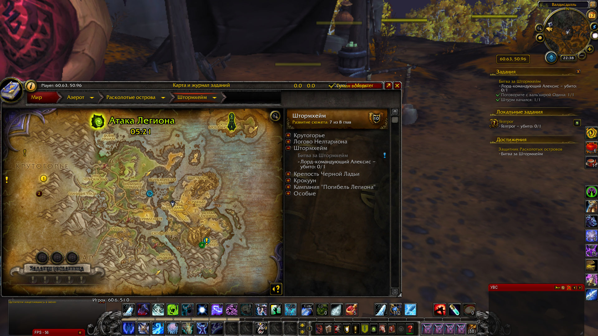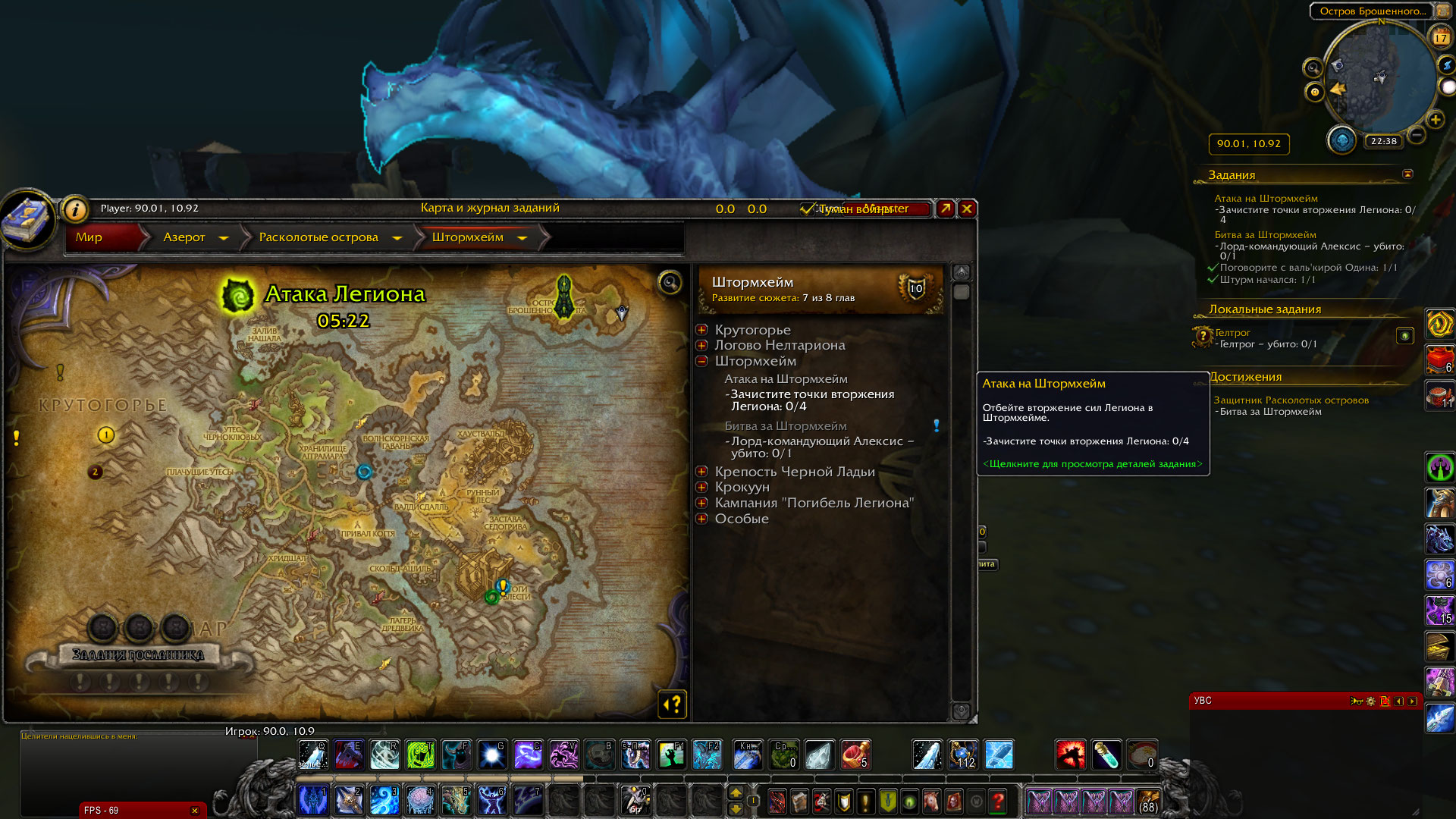 Astorath краток как никогда. Для полетов достаточно отбить одну (любую) атаку Легиона, которая пойдет в зачет квеста (и достижения, не связанного с полетами). По невыясненной причине значки локальных заданий атаки Легиона не отображаются на карте ни в одной локации и у всех. Тестеры и разработчики ищут причину. Но само задание "Атака на ..." выдается и локалки можно выполнить, если переместиться в зону их выполнения, они выдаются автоматически и засчитываются посл выполнения в счетчик. Рекомендую выполнять во время Атаки на Крутогорье, там сценарий работает наиболее правильно. Если самому не тупить то проходится с первого раза. Или Азсуна (шанс что получится примерно 30%, глючит сильно но сделать можно). |