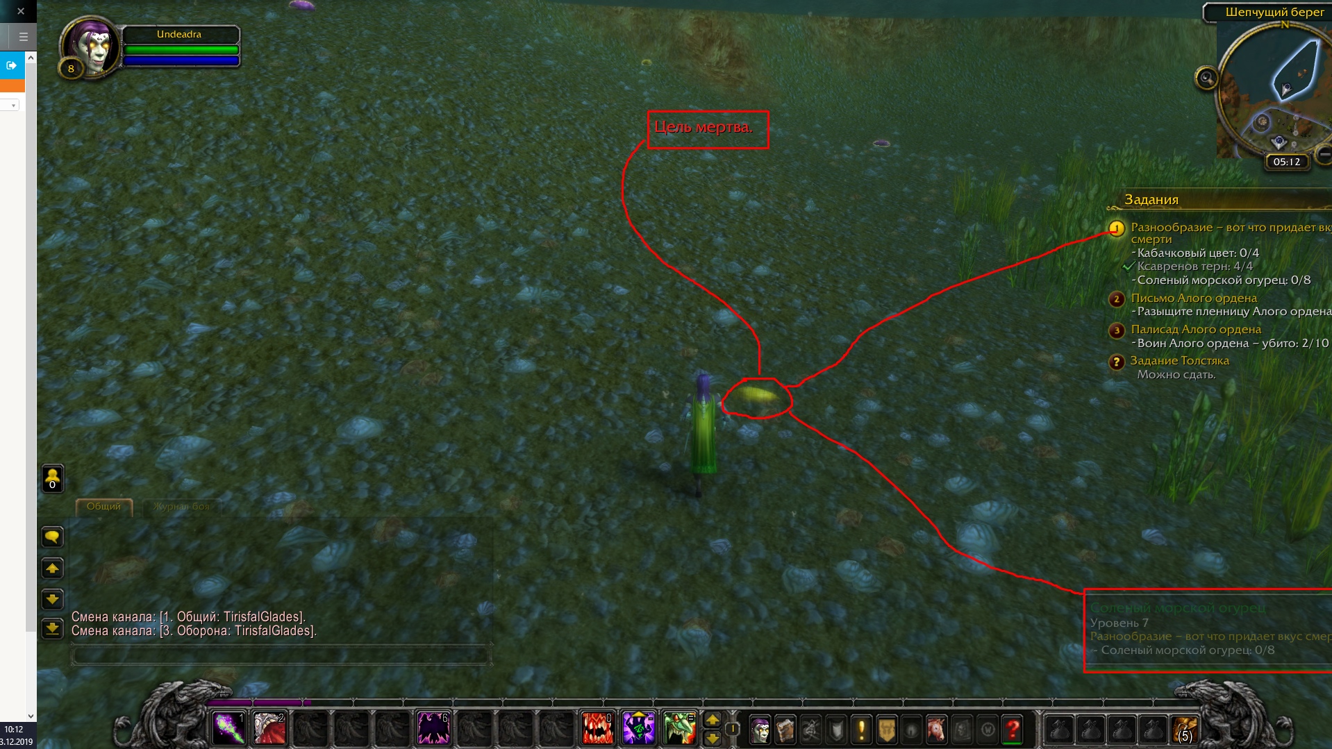 | Description | https://www.wowhead.com/quest=24976/variety-is-the-spice-of-death https://ru.wowhead.com/item=52068/%D1%81%D0%BE%D0%BB%D0%B5%D0%BD%D1%8B%D0%B9-%D0%BC%D0%BE%D1%80%D1%81%D0%BA%D0%BE%D0%B9-%D0%BE%D0%B3%D1%83%D1%80%D0%B5%D1%86 Не собираются соленые морские огурцы https://ru.wowhead.com/item=52068 . При клике по ним - пишет "Цель Мертва". | ||||