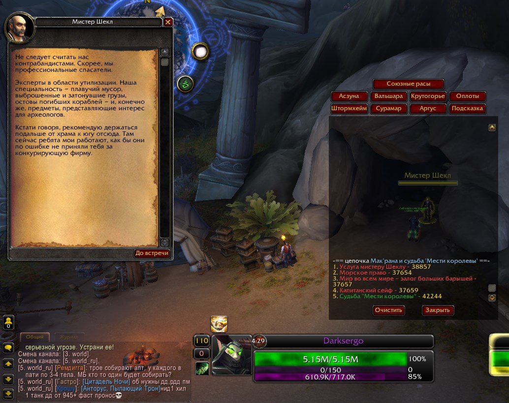 да, пробовал, проблема в том, что у меня больше нет никаких квестов в азсуне, вообще, одни локальные задания |