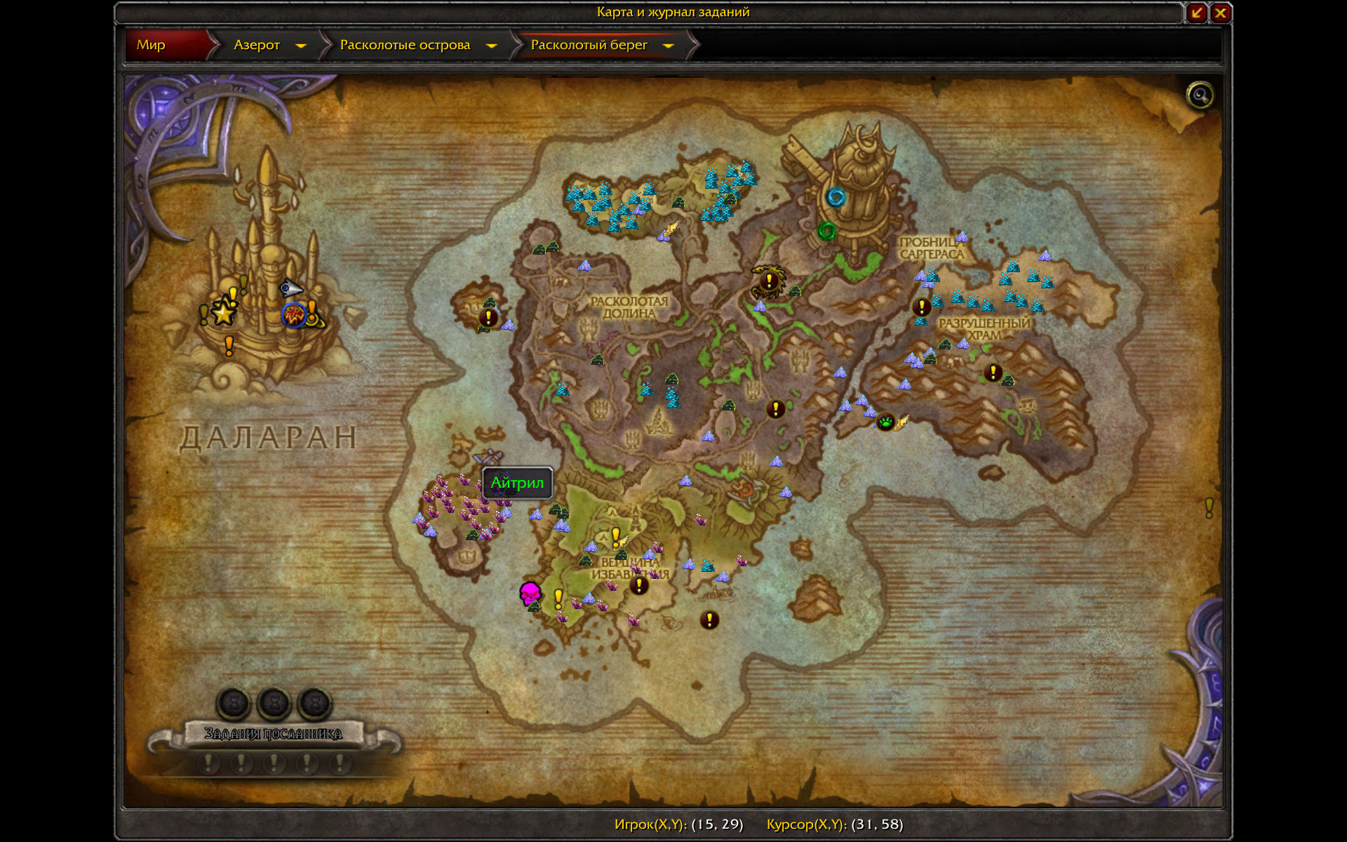 А зачем за Айтрилом летать - остров гарпий рядом с Расколотым берегом - там постоянный респ 9-11 точек айтрила, просто бегать по кругу и отмахиваться от гарпий. Звездная роза - остров скелетов на севере расколотого берега и плантации в разных местах основного острова, Сурамар. Фьярнскалл, грезолист и лисоцвет действительно спавнятся по случайному закону, там надо побегать от точки к точке. |