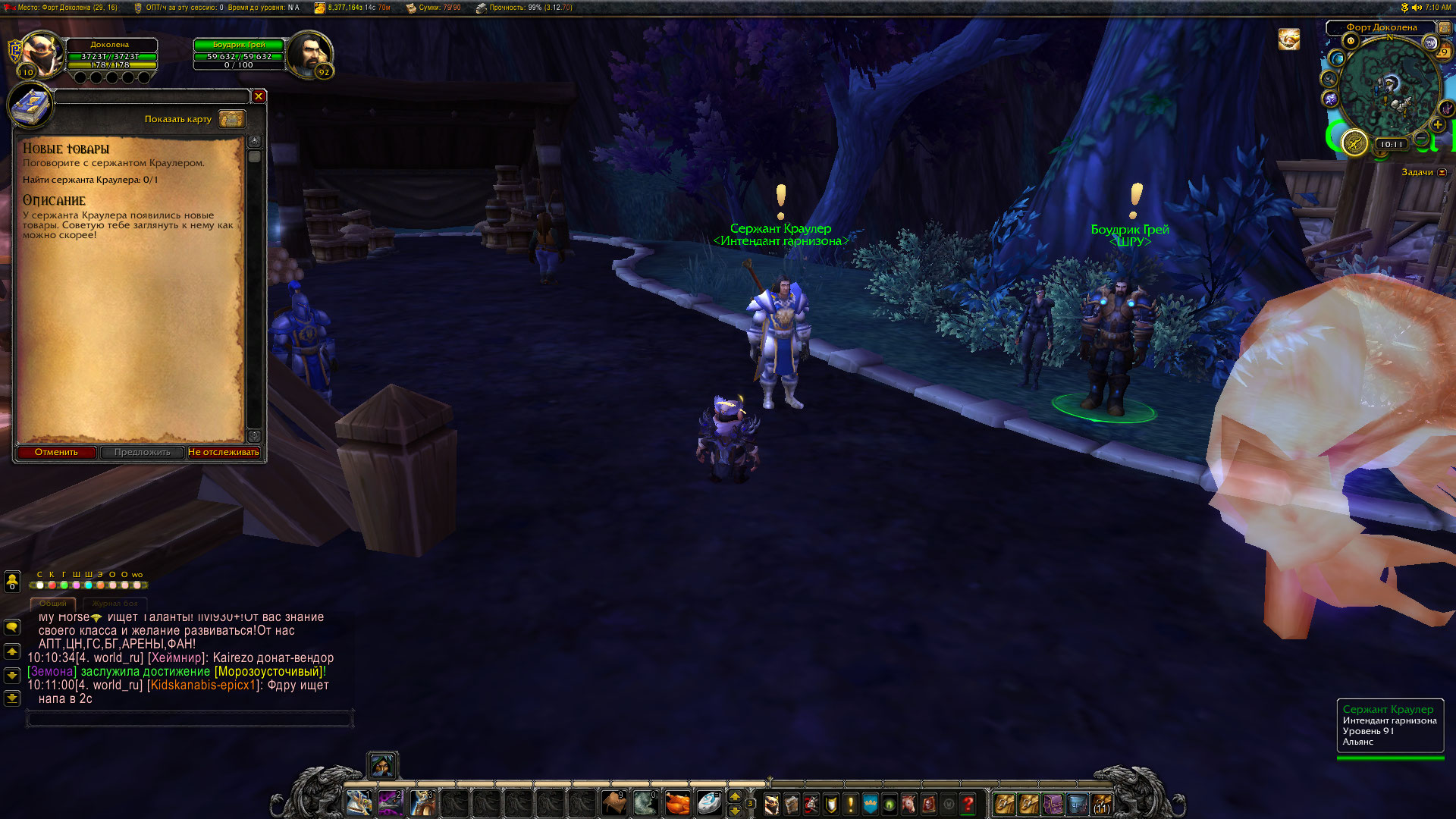 Здравствуйте. Квест https://ru.wowhead.com/quest=38408/новые-товары должен появляться на 1 уровне гарнизона и выполняться на 1 уровне (как обучающий квест). Квестовый NPC https://ru.wowhead.com/npc=78564/сержант-краулер присутствует в гарнизонах 1 и 3 уровня, на 2 уровне гарнизона там стоит другой NPC https://ru.wowhead.com/npc=88223/сержант-краулер который к квесту https://ru.wowhead.com/quest=38408/новые-товары отношения не имеет |