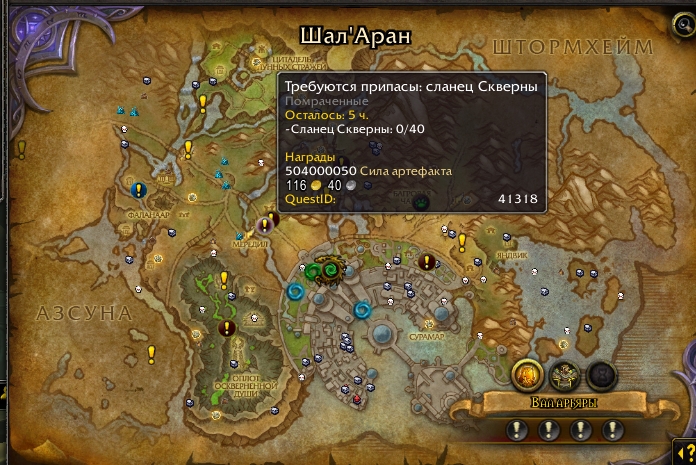 Да, причем поначалу локалка была замечена на инженере/кузнеце , которым прилетел забрать припасы помраченных и в списке квестов у Талисры увидел эту локалку. Пока думал выполнять или нет, пока перезаходил на алхимика, пока дважды слетал в СУрамар локалка исчезла. На карте значка не было, в списке ворлд квестов локалки не было. Так что вопрос остатка времени открыт - на самой локалке в колонке под радаром не было написано что "осталось 5 минут (красным)" как обычно бывает. Локалка просто исчезла из диалога Талисры. |