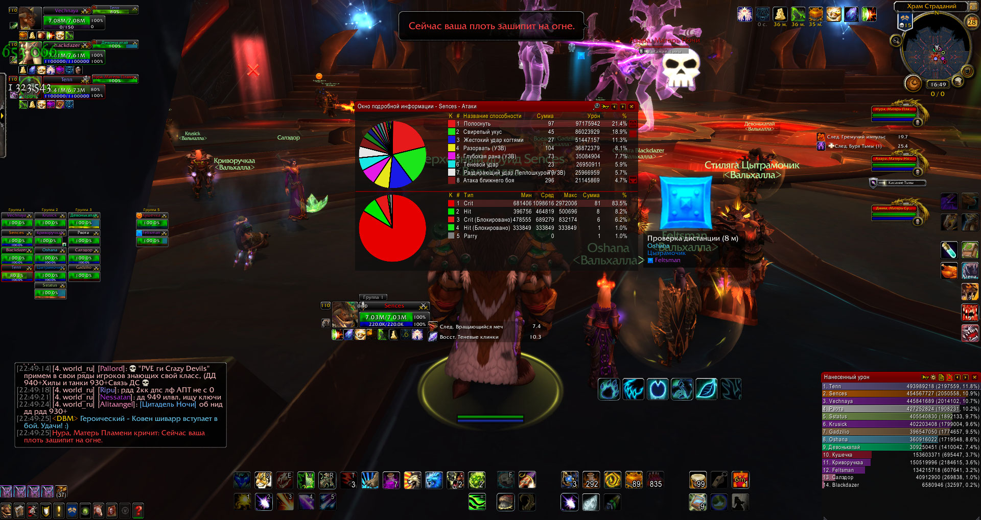 Ну по моим скринам это бой с вариматрасом, там частые блоки бывают, ещё как то замечал что именно у дх есть мисы от белых атак, чисто промахи, даже не блоки. Ну все по тактике убиваем, на оффе так же было, но там шанс блока все же ниже был, не идеально к спине же стояли там люди, но и есть бои по логам где вообще блоков не было, а у нас как то на много выше. |