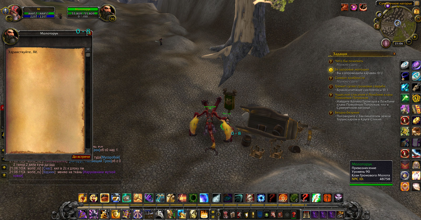 | Description | https://ru.wowhead.com/quest=28409/ У https://ru.wowhead.com/npc=48758/ нет диалога для старта квестового ивента. https://www.youtube.com/watch?v=coZxbuB69E8 | ||||