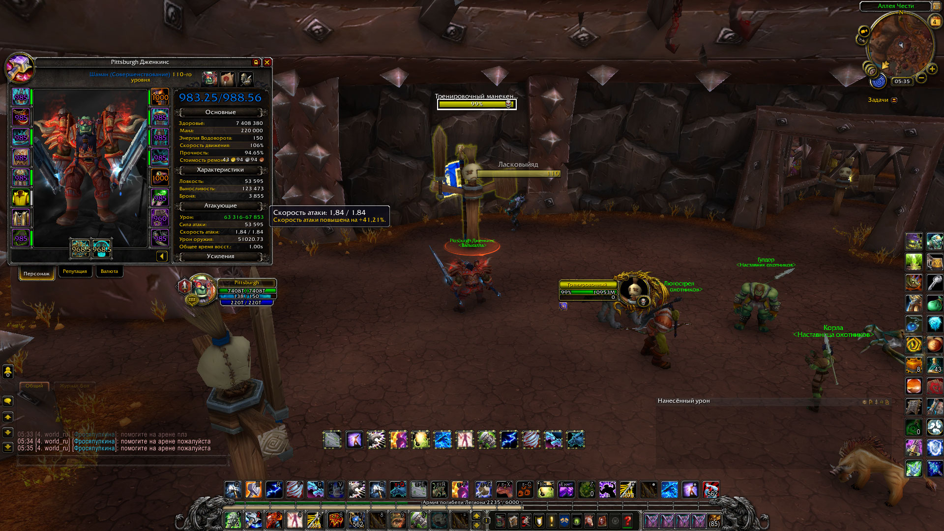 saymeplz1337 ты тупой нубас. без бафа у тебя 1 удар происходит каждые 1.84сек с бафом каждые 1.6сек а значит твои авто-атаки ускоряются на (1.84/1.6)-1=0.15 или 15% что и видно по тултипу p.s. по этому иди учи матчасть, и прежде чем ты отрыгнешь очередную бесполезную тему в БТ, тщательно проверь как оно работает у нас на сервере и как работало на офе |