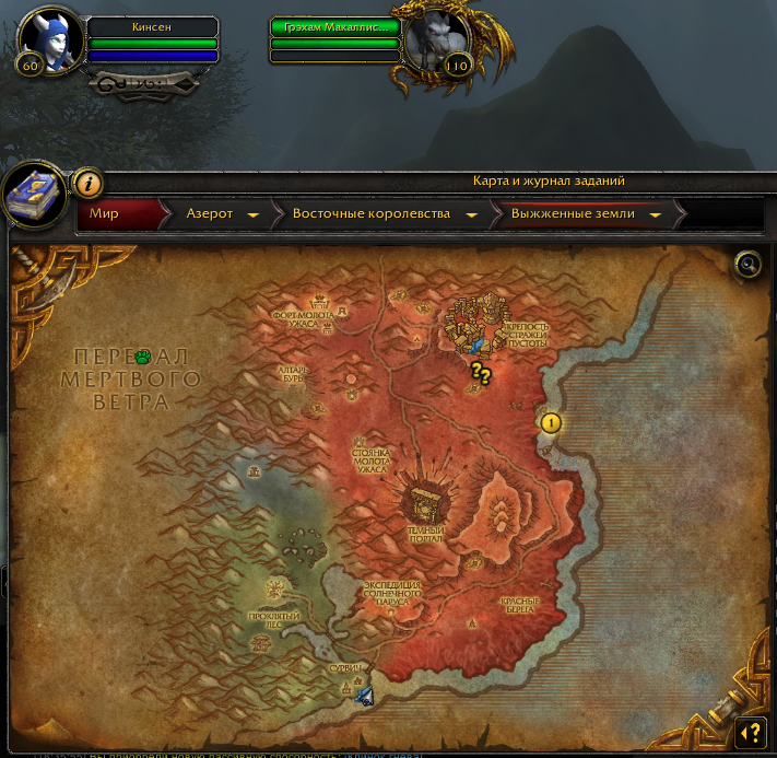 | Description | Стартовая позиция: Сурвич, Выжженные земли. Конечная позиция: Застава Болотной Воды, Болото Печали. ОР: перелёт строится из точки Сурвич в точку Застава Болотной Воды, Болото Печали. ФР: перелёт считает за начальную точку Форт Ливингстон, Тернистая долина. Полёт происходит под текстурами до Форта и только потом в Заставу. Игра не крашится, но полёт занимает куда больше времени, чем следует. | ||||