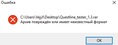 не так все просто. в данном случае Vejyl прав - архив таки не открывается наиболее распространенной версией winrar, скачивал 4 раза. Еще, в указанном архиве вариант аддона без служебных библиотек. Странно, но архив проходит все проверки и распаковывается в запускаемом из командной строки архиваторе, а обычном оконном не хочет. Неважно, рекомендую скачать полный архив отсюда https://drive.google.com/open?id=1g52JVbSZ1sujovMmwqsdBkbUYd0rEkBd Ссылка взята со страницы форума http://forum.uwow.biz/topic/289107-questline-tester-addon-dlya-proverki-kvestovyh-tcepochek-legio/ |