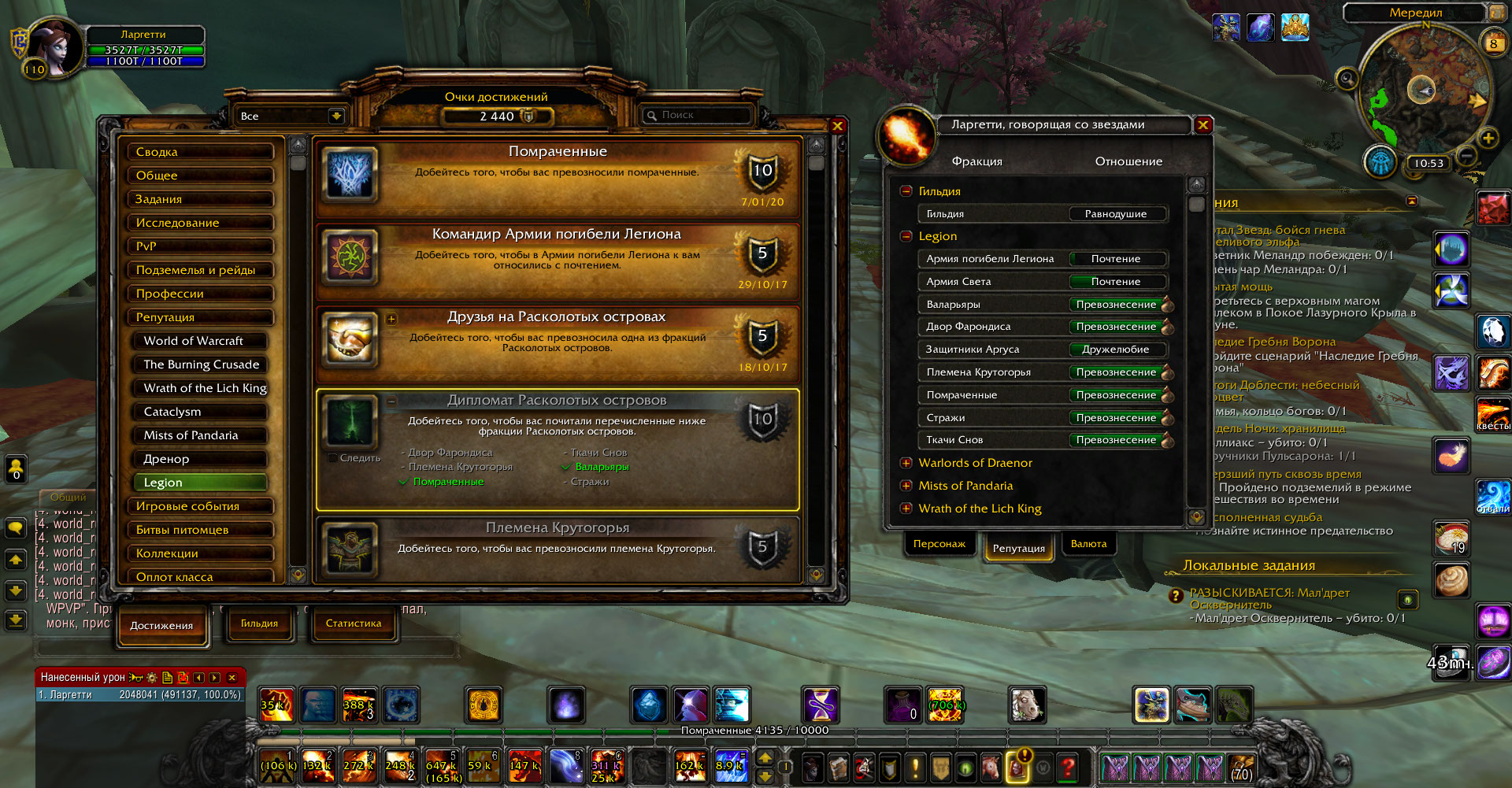 | Description | Прокачана репутация до превознесения с фракциями, но ачивок за эти фракции нет, так же как и необходимого для открытия полетов достижения "Дипломат Расколотых островов" | ||||