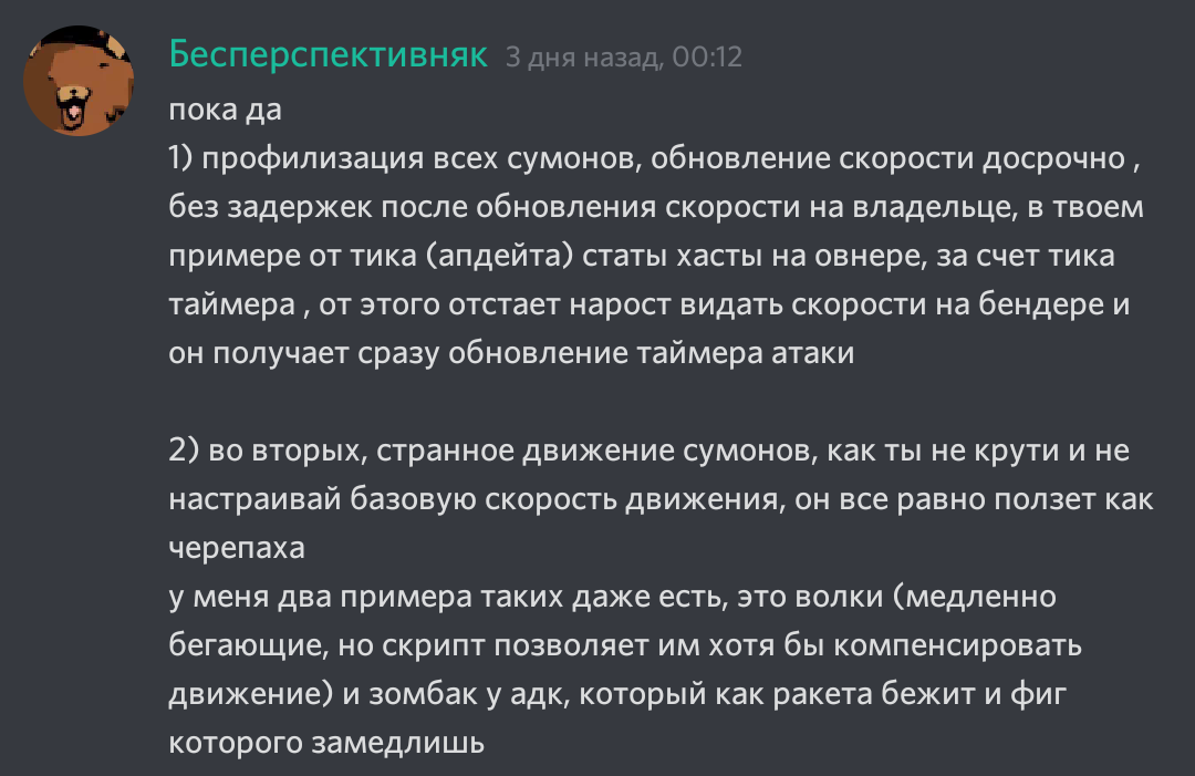 Мы с гоустом общались в дискорде, он сказал что пробовал увеличивать мув спид всем сумонам, а они все равно ползут со скоростью черепахи. |