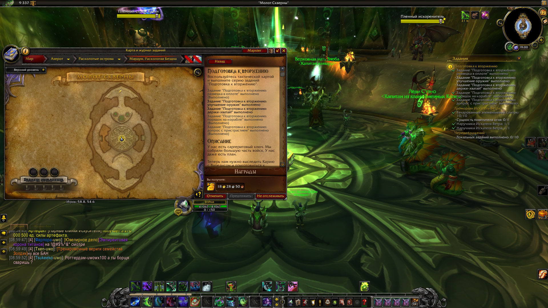 | Description | https://ru.wowhead.com/quest=42669/%D0%BF%D0%BE%D0%B4%D0%B3%D0%BE%D1%82%D0%BE%D0%B2%D0%BA%D0%B0-%D0%BA-%D0%B2%D1%82%D0%BE%D1%80%D0%B6%D0%B5%D0%BD%D0%B8%D1%8E Не выдаются 2 задания: 1) Задание "Подготовка к вторжению: улучшение оружия" выполнено 2) Задание "Подготовка к вторжению: держи-хватай!" выполнено Постоянно только те, которые на скриншоте Персонаж Joshua, аргус х100 | ||||
