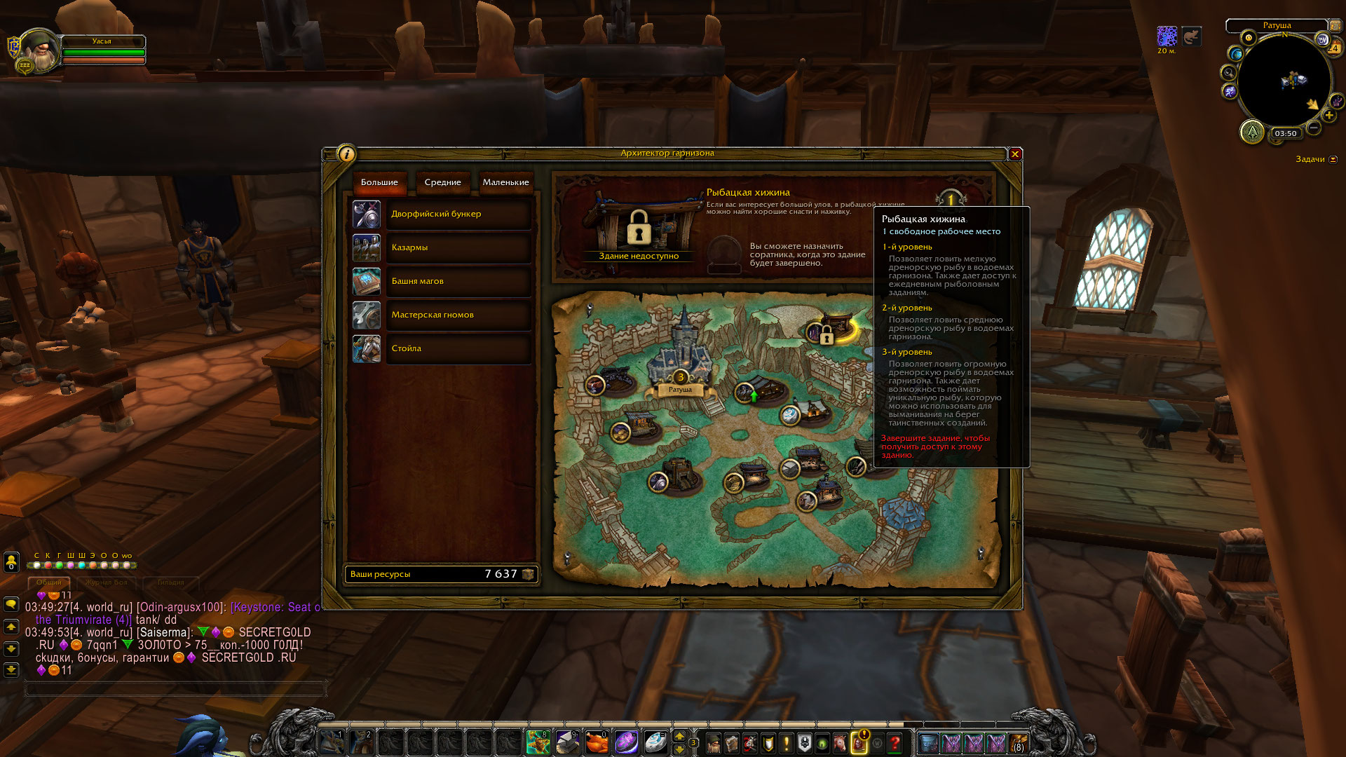 DescriptionНе появляется учитель рыбной ловли https://ru.wowhead.com/npc=77733/рон-эштон в гарнизоне 2-го уровня для получения начального квеста на открытие хижины рыбака https://ru.wowhead.com/quest=34194/поиск-помощников