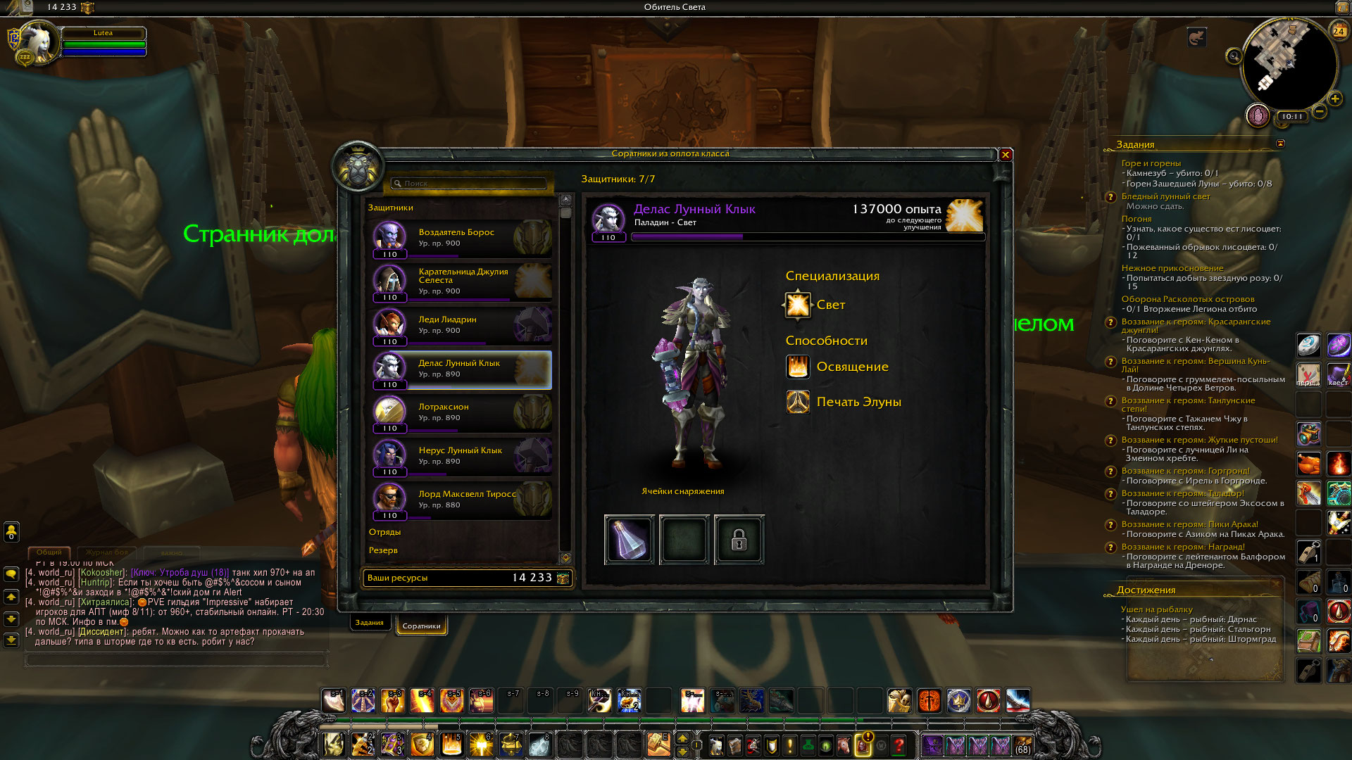 | Description | Доброго времени суток. Сегодня я зашла на основного персонажа (паладин), и оказалось, что на всех защитниках, кроме двух ("Нерус лунный клык" и "Делас лунный клык") пропало снаряжение защитников. На память могу сказать, что: "Воздаятель Борос" - был канделябр лазурного света с бустом успеха при задании менее 8 часов, второй не помню "Карательница джулия селеста" - в одной ячейке был свиток уменьшающий время выполнения задания на 30%, второго толи не было, толи не помню "Леди лиадрин" - морковка на сокращение времени задания, второе не помню "Лотраксион" - вообще не помню, но что-то на прислужников "Лорд Максвелл Тиросс" - тоже не могу вспомнить. Скринов с снаряжением у меня конечно же не оказалось и не помню я на изусть что у меня было. | ||||