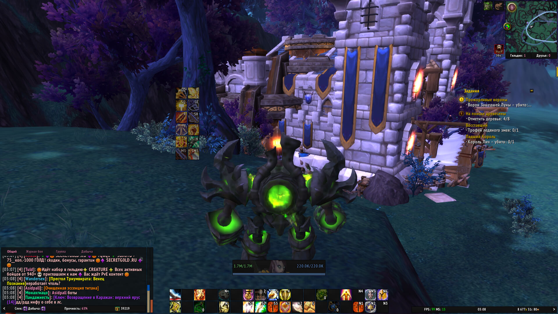 | Description | Добрый день. Очень давно создавал гарнизоны, наверное еще на 7.2. Потом видимо гарнизоны переделывали или дорабатывали. Сейчас у меня такая проблема у двух персонажей. 1) Гарнизон в стадии "до постройки". Сделан квест [https://ru.wowhead.com/quest=34583/]. Вроде бы всё ок, но только даже в этой стадии стоят абсолютно все возможные здания друг в друге. Постарался показать на первых трех скринах. Думал пройти квесты и так, а после постройки гарнизона мб разбагалось бы, но при попытке подойти поближе крашится вов. 2) Гарнизон в стадии "1й уровень". Но самая первая проблема - не кликабелен стол архитектора. Нет кв "постройка казарм" и он не сделан (.q s 34587). После данного квеста обычно становится доступен стол. Сами казармы можно увидеть на последнем скрине, там даже лежат чертежи, но и они не кликабельны. После релога, это вообще пропадает. На скрине отметил какие кв у меня сделаны - http://joxi.ru/zANdpxPfv0Vy9m. Ходил к НПС в даларане (тот что баги фиксит), но он мне ничем не помог. --- Я понимаю что это гарнизоны это то еще порно для разработчиков, а моя ситуация так вообще скорее всего единичный случай, да и это не актуальный контент. Поэтому вот такой вопрос: возможно удалить гарнизон для конкретных персонажей или всего аккаунта. Суть в том, что бы откатить всё что связано с гарнизоном до того момента, как мы приплываем на корабле и берем квест [https://ru.wowhead.com/quest=34582]. Видел у НПС в даларане пункт про удаление гарнизона, но указано, что он только при баге после смены фракции. Экспериментировать не стал. | ||||