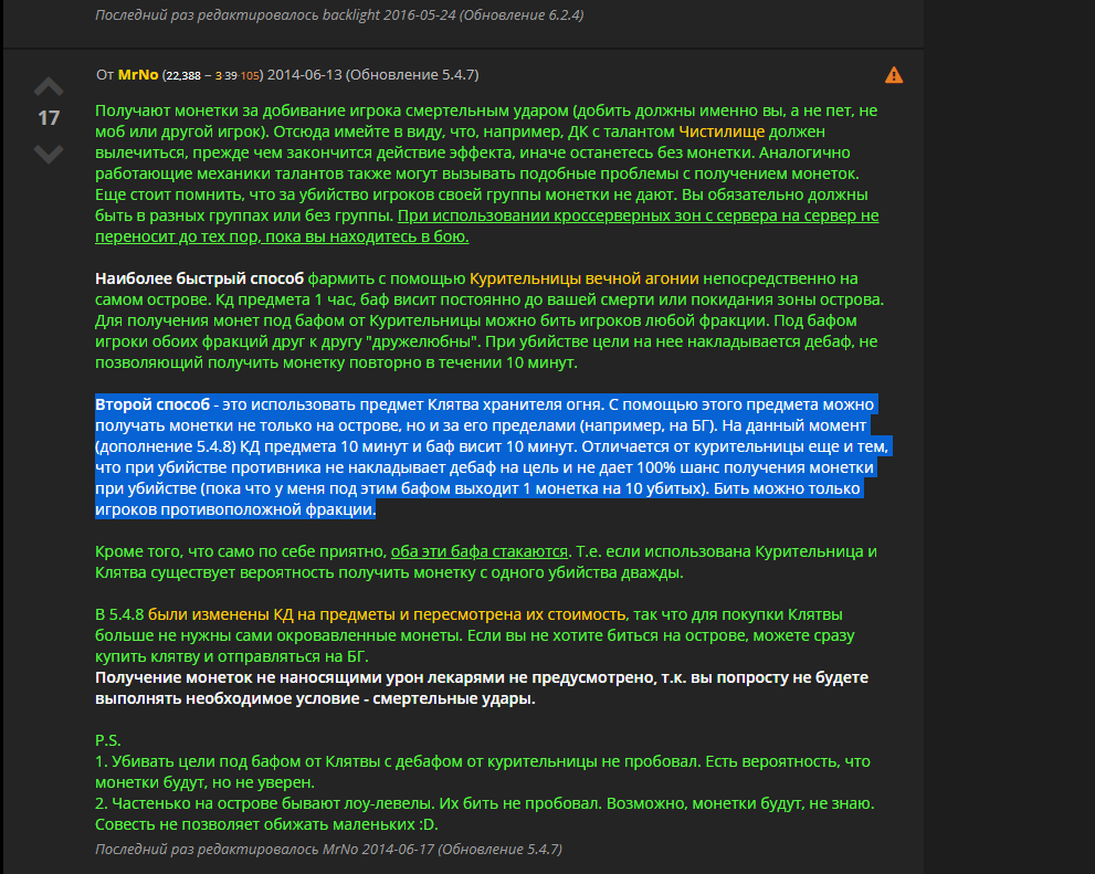 | Description | https://ru.wowhead.com/item=102463/%D0%BA%D0%BB%D1%8F%D1%82%D0%B2%D0%B0-%D1%85%D1%80%D0%B0%D0%BD%D0%B8%D1%82%D0%B5%D0%BB%D1%8F-%D0%BE%D0%B3%D0%BD%D1%8F должна применяться на БГ и давать https://ru.wowhead.com/currency=789/%D0%BE%D0%BA%D1%80%D0%BE%D0%B2%D0%B0%D0%B2%D0%BB%D0%B5%D0%BD%D0%BD%D0%B0%D1%8F-%D0%BC%D0%BE%D0%BD%D0%B5%D1%82%D0%B0 при нанесении смертельного удара по игроку. У нас на бг её невозможно использовать. | ||||