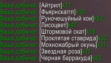 tenpolex инфа на WH не точная, чекай дроп https://www.wowdb.com/items/140222-harvested-goods#related:contains-item + коммент с WH https://ru.wowhead.com/item=140222/%D1%81%D0%BE%D0%B1%D1%80%D0%B0%D0%BD%D0%BD%D1%8B%D0%B5-%D0%B7%D0%B0%D0%BF%D0%B0%D1%81%D1%8B#comments От Barnhevdi (3,268 – 8·14) 2016-10-26 (Обновление 7.1.0) Не смотря на указанное количество получаемых предметов из сумки удалось из нее одной вытянуть х51 Фьярнскаггла ну и х13 Черной барракуды, был довольно удивлен а всё потому что в 7.1.0 эти сумки были переработаны а WH инфу на актуальную не обновил. |